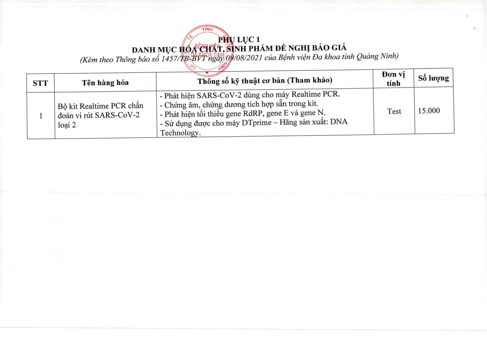 - Mời báo giá hóa chất, sinh phẩm xét nghiệm dịch vụ Covid-19 năm 2021-2022
