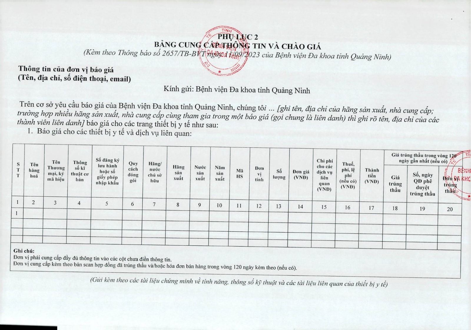 - Thông báo mời báo giá hàng hóa phục vụ công tác khám chữa bệnh (2615)