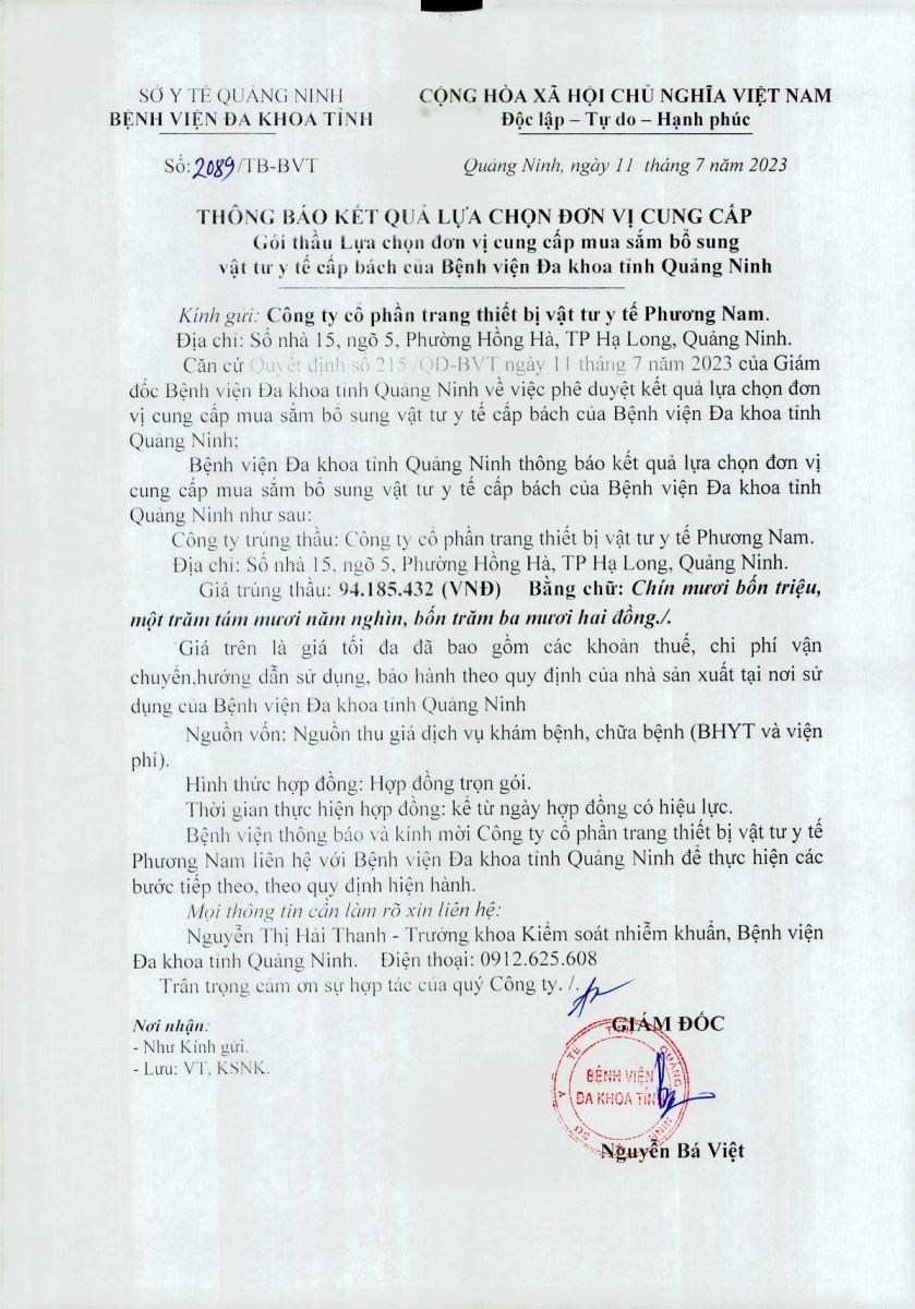 Thông báo kết quả lựa chọn đơn vị (2089)