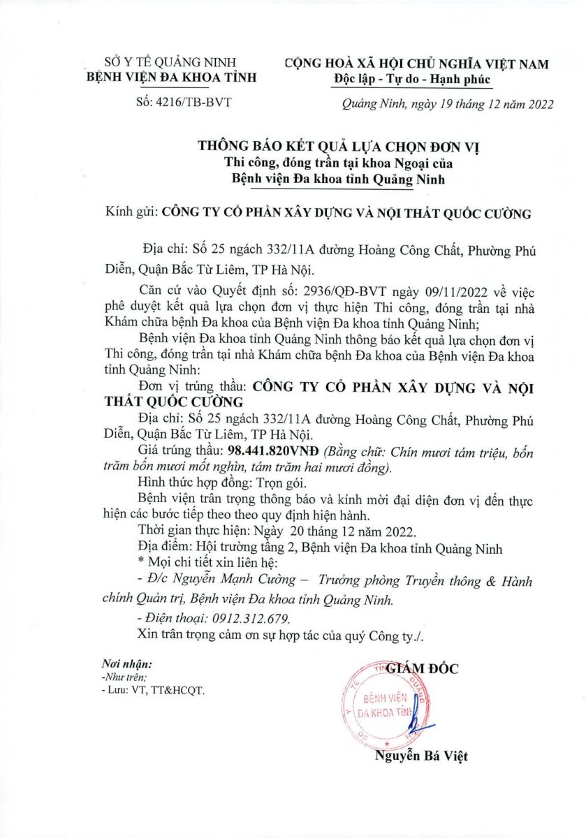 - Thông báo kết quả lựa chọn đơn vị cung cấp (4162)