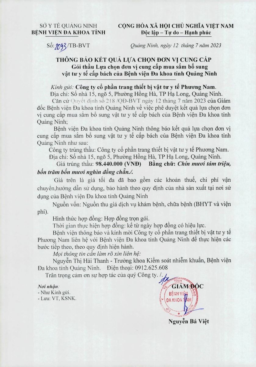Thông báo kết quả lựa chọn đơn vị cung cấp (2093)