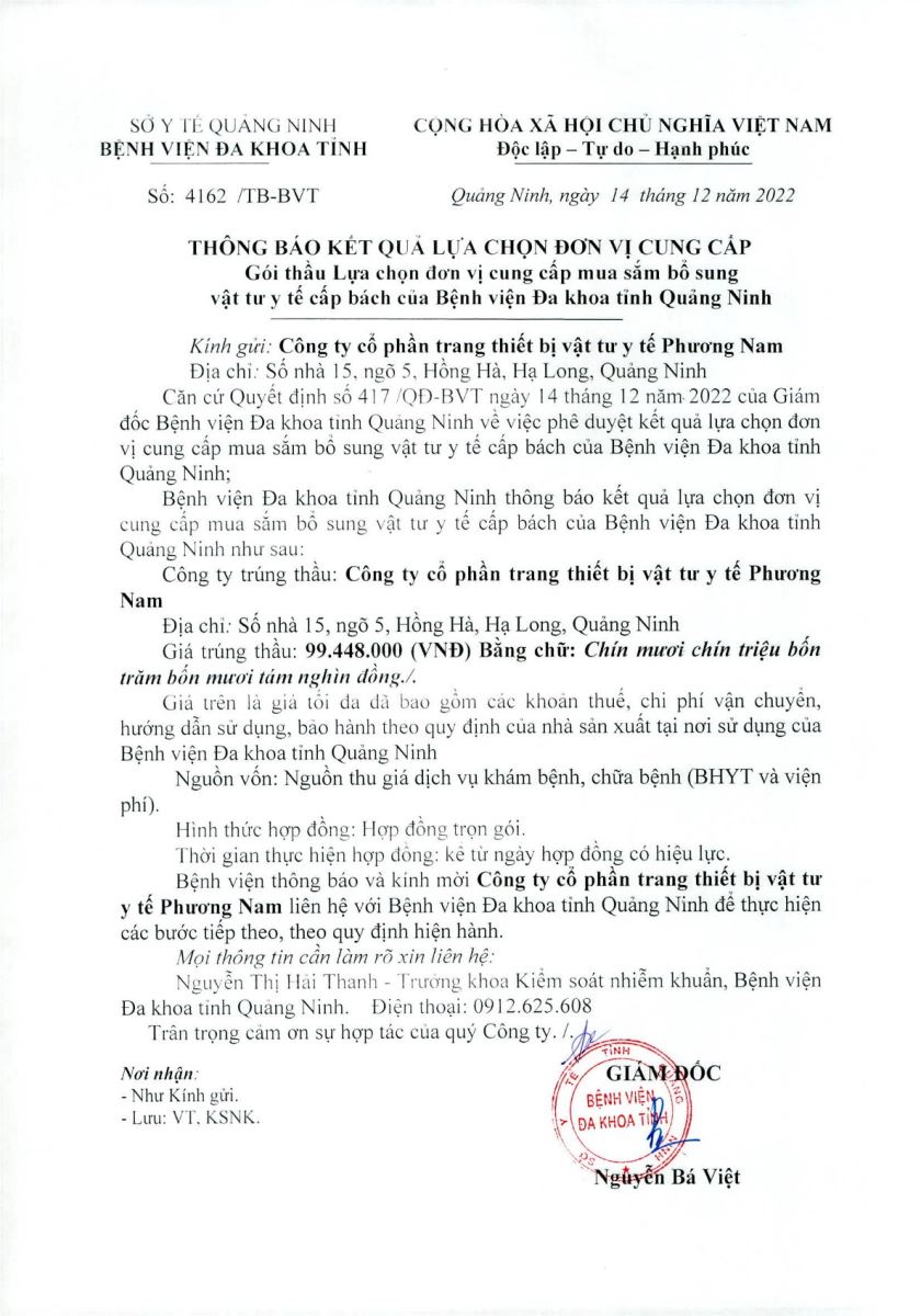 Thông báo kết quả lựa chọn đơn vị cung cấp (4162)