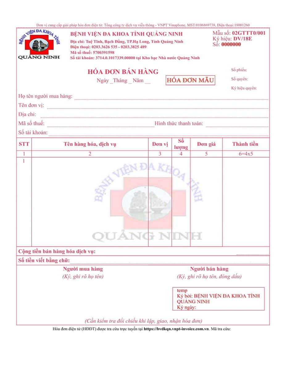 Ngày 11/06/2018, Bệnh viện Đa khoa tỉnh Quảng Ninh chính thức đưa vào sử dụng dịch vụ Hệ thống phát hành Hóa đơn điện tử.