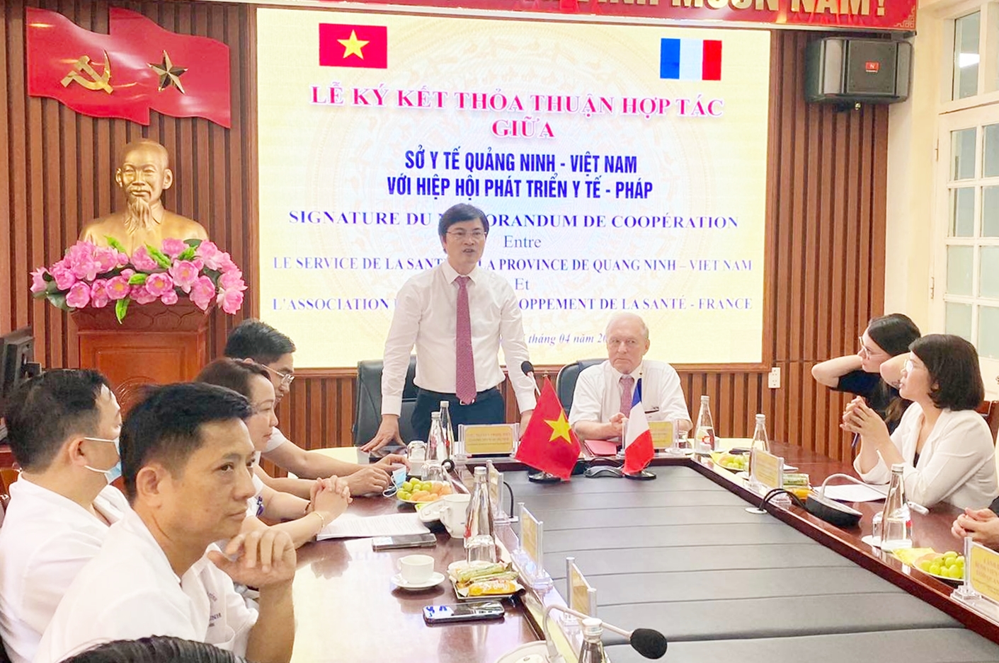 Giám đốc Sở Y tế và Chủ tịch Hiệp hội phát triển y tế Pháp ký kết thỏa thuận hợp tác hai bên.