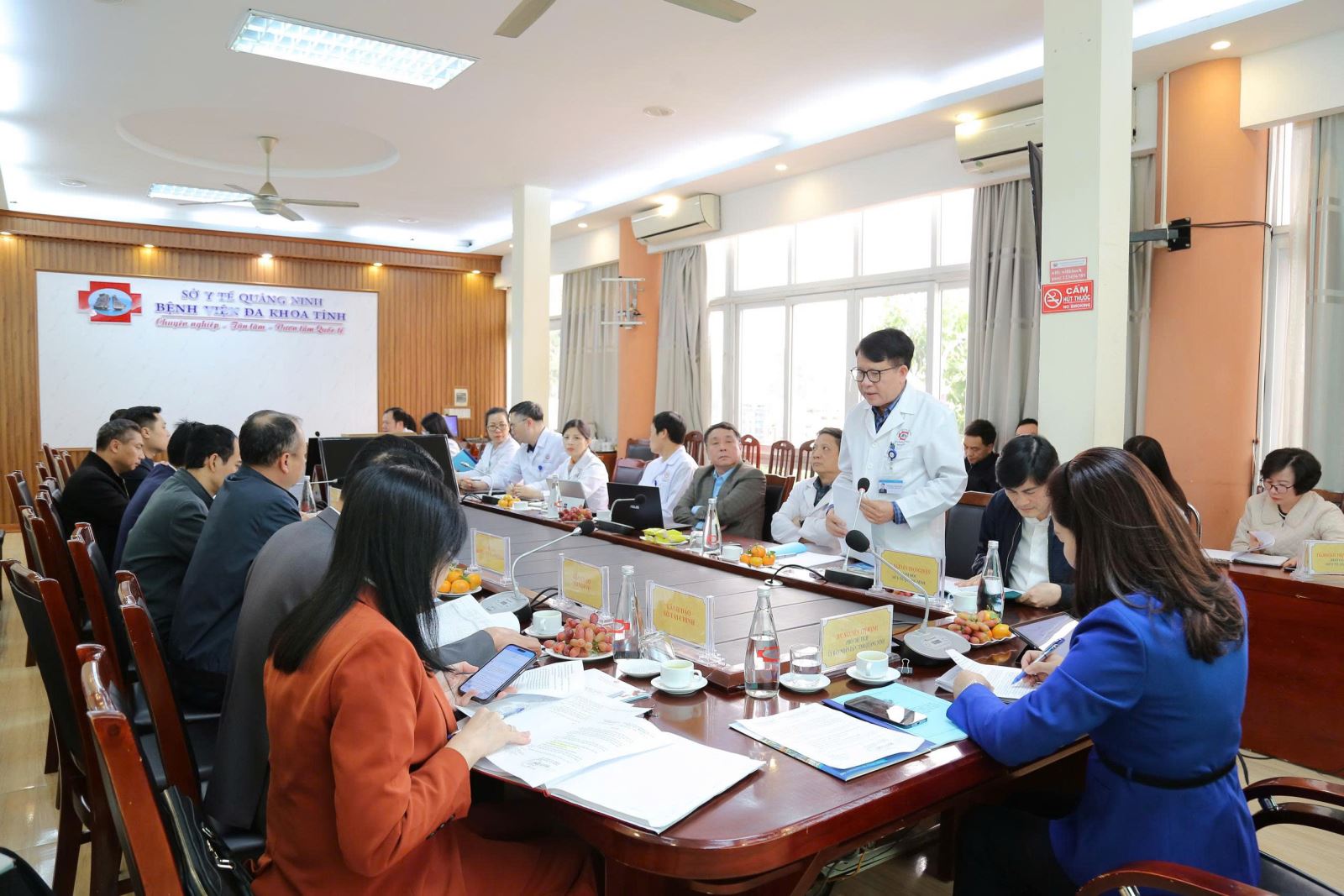 Hội nghị có sụ tham dự các lãnh đạo từ các Sở: Tài chính, Xây dựng, Nội vụ, Khoa học và Công nghệ, Nông nghiệp và Phát triển nông thôn, Ban Quản lý đầu tư xây dựng Khu vực I. Về phía ngành Y tế, có sự tham gia của TS. Nguyễn Trọng Diện – Giám đốc Sở Y tế, cùng các Trưởng/Phó phòng chức năng thuộc Sở. Về phía Bệnh viện Đa khoa tỉnh Quảng Ninh, có sự hiện diện của Ban Giám đốc Bệnh viện, Trưởng/Phó các khoa, phòng, đơn nguyên.
