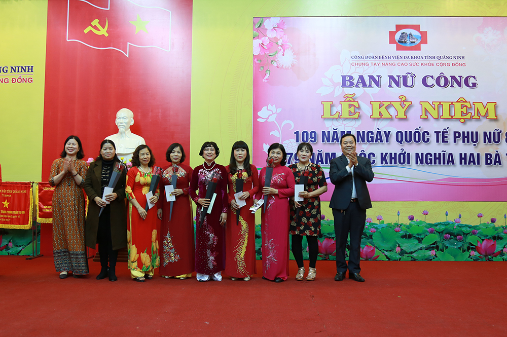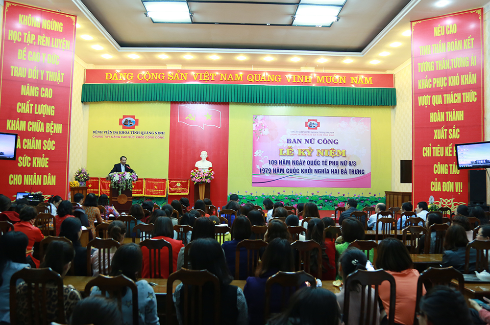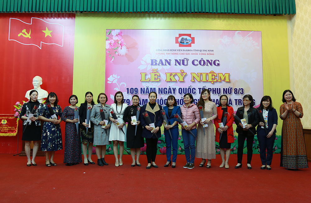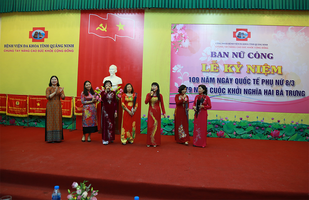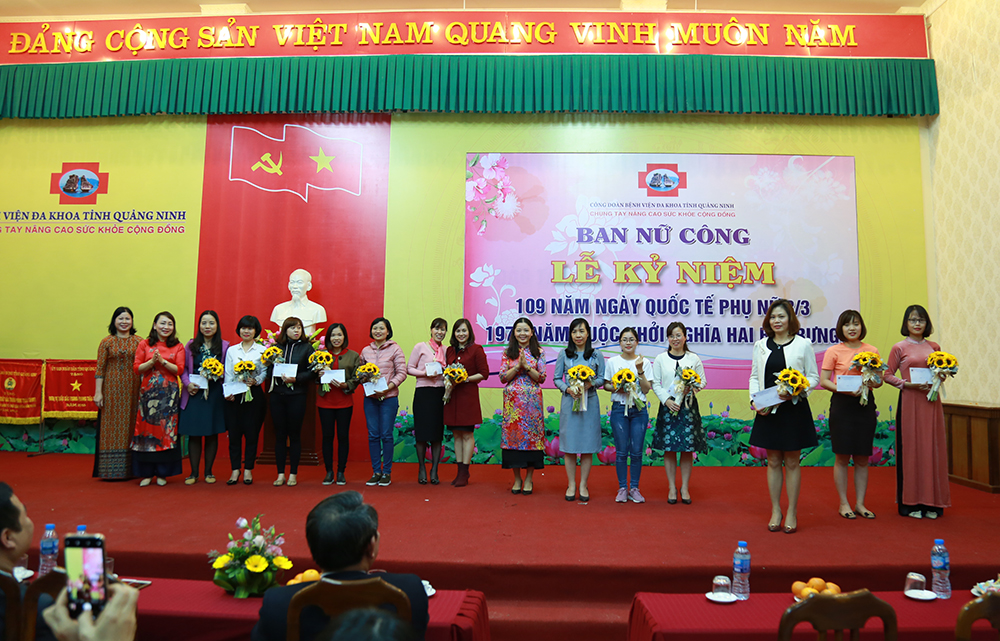 Ngày 8/3, Ban nữ công Bệnh viện Đa khoa tỉnh Quảng Ninh tổ chức Lễ kỷ niệm 109 năm ngày Quốc tế Phụ nữ 8/3 (1910 - 2019) và 1979 năm cuộc khởi nghĩa Hai Bà Trưng nhằm tri ân các nữ cán bộ, công nhân, viên chức, người lao động (CBCNVC-LĐ) đang công tác tại Bệnh viện.
