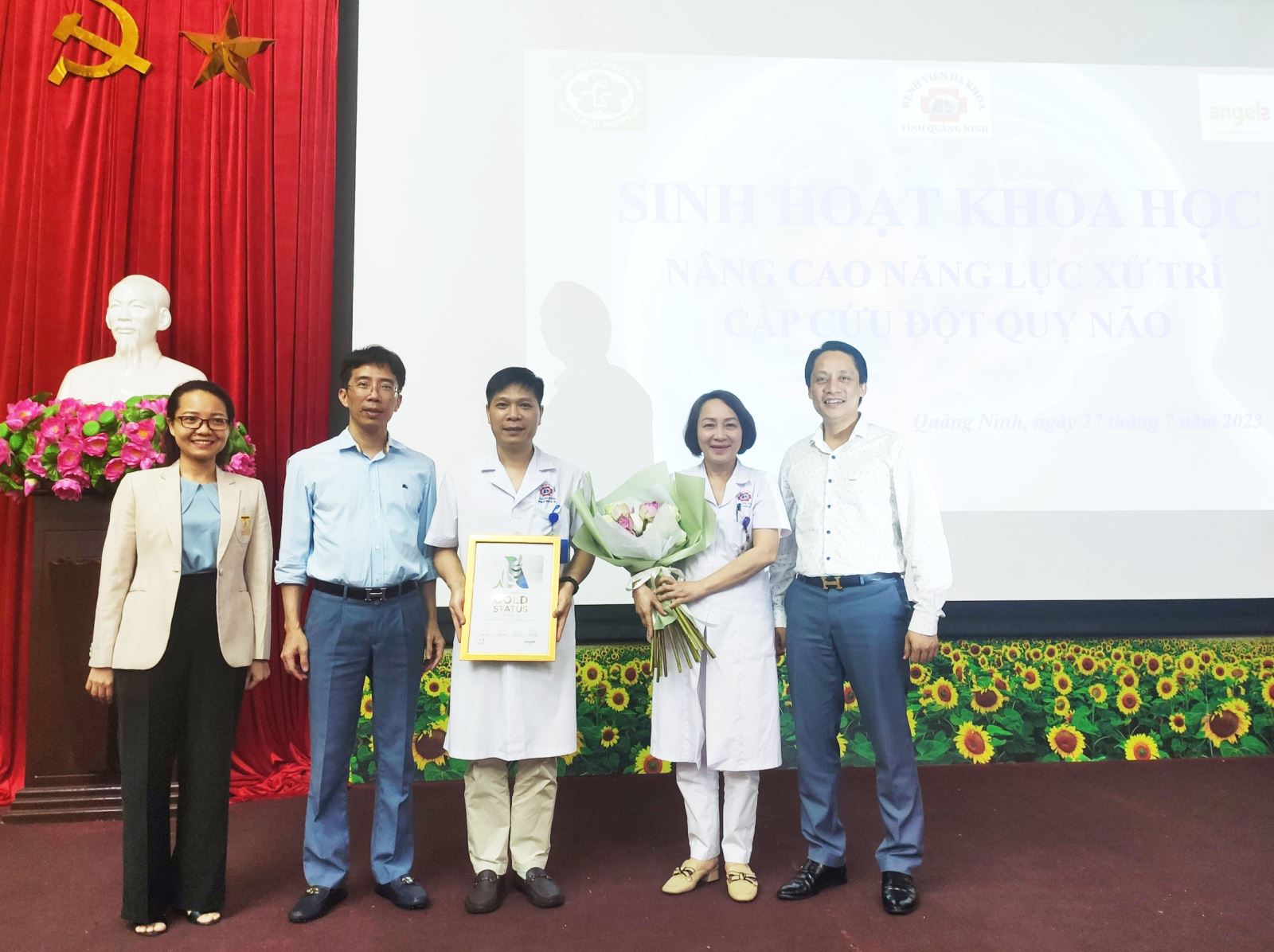 Nhằm cập nhật những kiến thức mới nhất cho đội ngũ y, bác sĩ về lĩnh vực đột quỵ não, ngày 27/7, Bệnh viện Đa khoa tỉnh Quảng Ninh phối hợp với Bệnh viện Bạch Mai tổ chức chương trình sinh hoạt khoa học với các chủ đề về “Cập nhật kết quả các nghiên cứu tại ESOC 2023 của Hội nghị Đột quỵ Châu Âu” và “Chương trình chăm sóc đột quỵ Angels”. Đặc biệt trong dịp này, Bệnh viện Đa khoa tỉnh Quảng Ninh đã vinh dự đón nhận chứng nhận tiêu chuẩn Vàng (Gold Status) của Hội Đột quỵ Thế giới.