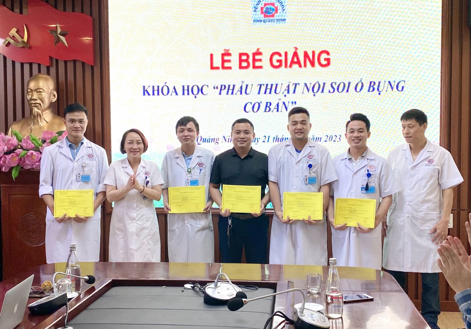 Chiều ngày 21/7, Bệnh viện Đa khoa tỉnh Quảng Ninh tổ chức Lễ bế giảng khóa học “Phẫu thuật nội soi ổ bụng cơ bản” và trao chứng chỉ cho học viên là các bác sĩ ngoại khoa đang công tác tại các đơn vị y tế trong và ngoài tỉnh sau 3 tháng nỗ lực học tập.
