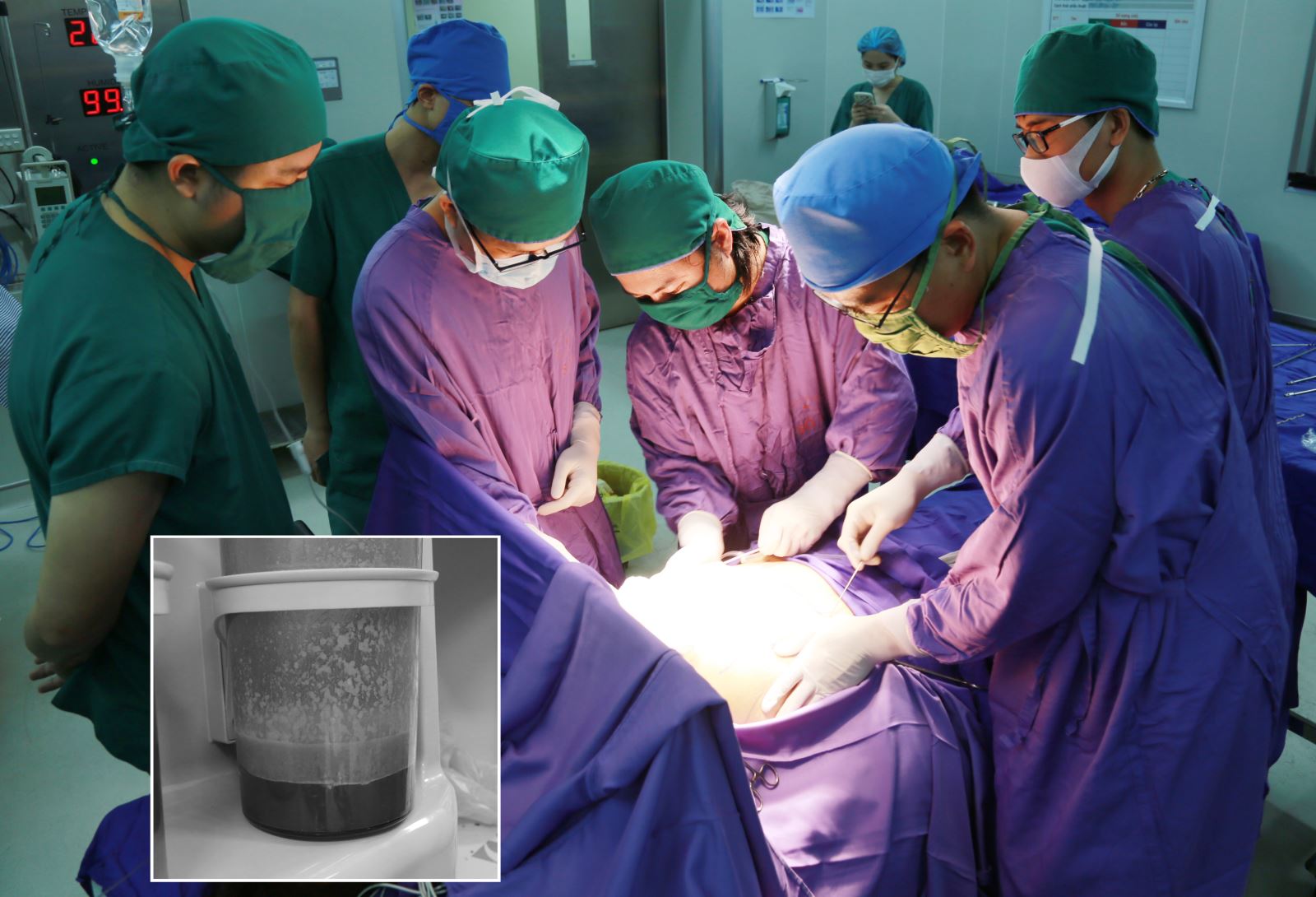 Các bác sĩ tiến hành tạo hình thành bụng cho chị M.