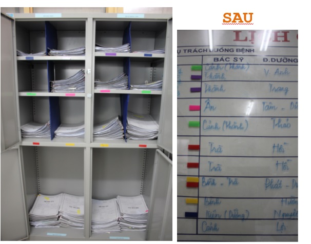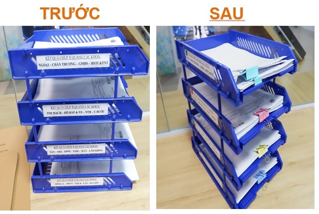 Với sự hưởng ứng nhiệt tình của tất cả cán bộ, nhân viên y tế tại các khoa phòng, kết quả "Ngày hội 5S" sau quá trình triển khai tại 3 khoa Ung bướu, Nội tổng hợp, Chẩn đoán hình ảnh đã có những kết quả rất đáng khích lệ. Tổng kết hình ảnh thực tế cho thấy sự khác biệt trước và sau rõ rệt khi thực hiện phương pháp 5s: Môi trường làm việc trở nên sạch sẽ, thông thoáng và ngăn nắp; mọi thứ được sắp xếp khoa học giúp thuận tiện, an toàn hơn trong việc quản lý, lưu trữ tài liệu; các trang thiết bị, vật tư y tế luôn sẵn sàng hỗ trợ cho công việc, tránh sai sót xảy ra. Chia sẻ về kết quả thực hiện ngày hội 5S, đại diện các khoa được triển khai đều thấy cải tiến rõ rệt cả về hình thức lẫn nội dung được gọn gàng, ngăn nắp, tạo không gian làm việc thông thoáng sạch sẽ và mong muốn tiếp tục duy trì 5S hiệu quả hơn nữa trong thời gian tới.