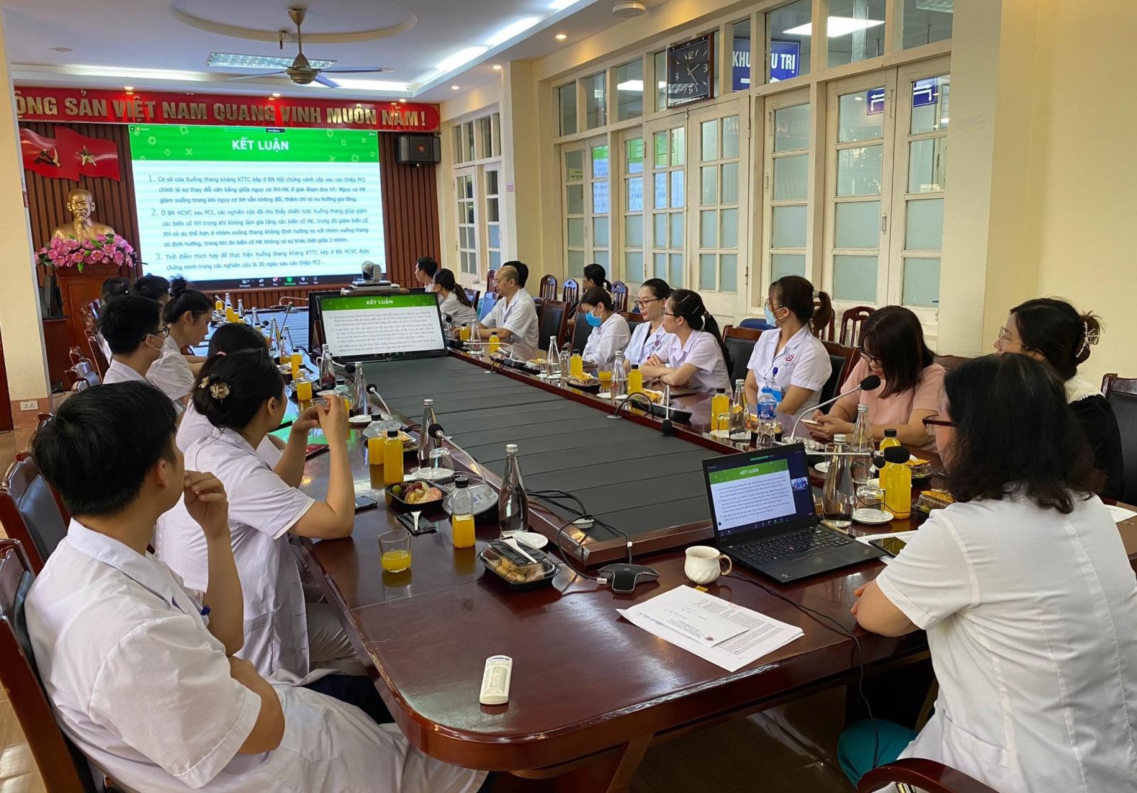 Tiếp nối chuỗi chương trình hội thảo, ngày 14/7/2023, Bệnh viện Tim Hà Nội phối hợp Bệnh viện Đa khoa tỉnh Quảng Ninh tổ chức kỳ 2 Hội thảo khoa học trực tuyến chủ đề “Ứng dụng xu hướng sử dụng kháng kết tập tiểu cầu trên bệnh nhân bệnh động mạch vành vào thực tế lâm sàng tại Việt Nam” với sự tham gia đông đảo của các bác sĩ tại 4 điểm cầu.