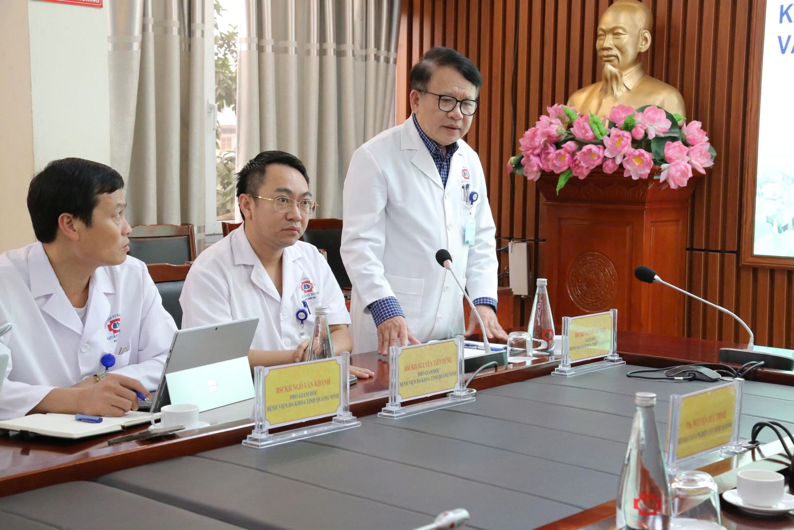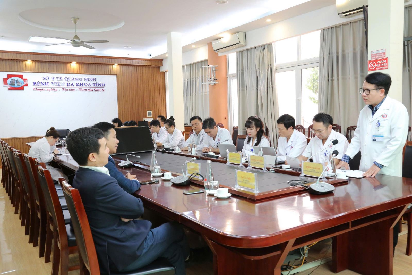 Mở đầu buổi làm việc, lãnh đạo Bệnh viện Đa khoa tỉnh Quảng Ninh đã giới thiệu tổng quan về tình hình hoạt động của đơn vị. Là bệnh viện hạng I tuyến chuyên sâu của tỉnh, Bệnh viện đã không ngừng phát triển trên mọi phương diện: hạ tầng đồng bộ, trang thiết bị hiện đại, đội ngũ nhân lực trình độ cao và liên tục triển khai nhiều kỹ thuật mới, chuyên sâu, góp phần nâng cao chất lượng khám chữa bệnh cho nhân dân.