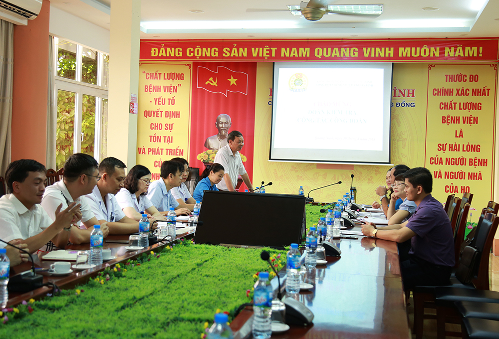 Ngày 30/8, Đoàn kiểm tra Công đoàn ngành Y tế do đồng chí Hoàng Thị Hồng Phấn - Chủ tịch Công đoàn ngành Y tế làm trưởng đoàn cùng các thành viên đã có buổi làm việc với Ban chấp hành (BCH) Công đoàn Bệnh viện Đa khoa tỉnh Quảng Ninh.