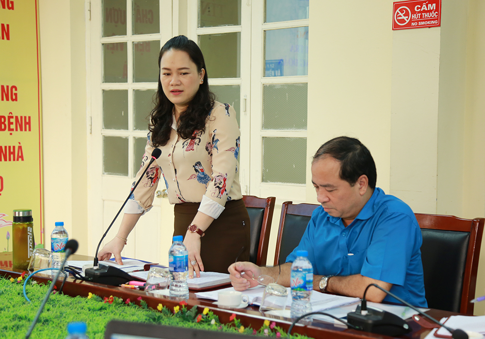 Đồng chí Hoàng Thị Hồng Phấn - Chú tịch Công đoàn ngành Y tế tỉnh phát biểu kết luận tại buổi làm việc