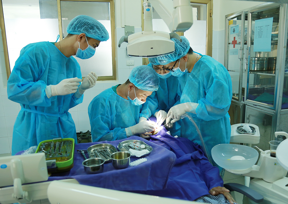 Hiện các kỹ thuật phục hình răng đã được các bác sĩ khoa Răng hàm mặt của Bệnh viện triển khai thường quy, thực hiện thành công cho hàng trăm trường hợp ở mọi lứa tuổi từ đơn giản đến phức tạp. Không ít bệnh nhân bị chấn thương vùng hàm mặt phức tạp, gãy nhiều răng nhưng không thể đáp ứng việc cấy ghép do xương hàm tự nhiên tổn hại đã được bác sĩ thực hiện phẫu thuật kết hợp ghép xương nhân tạo và lắp trụ răng giả, đảm bảo mang lại cấu trúc răng khỏe mạnh bình thường. Như trường hợp của bệnh nhân Hoàng Văn H. (32 tuổi, trú tại phường Hà Tu, TP Hạ Long) khoảng 8 tháng trước không may tai nạn dẫn đến chấn thương xương hàm mặt và gãy 2 răng. Kíp bác sĩ chuyên khoa Răng hàm mặt đã điều trị ổn định và thực hiện phẫu thuật ghép bột xương nhân tạo, trồng 2 trụ implant cho người bệnh.