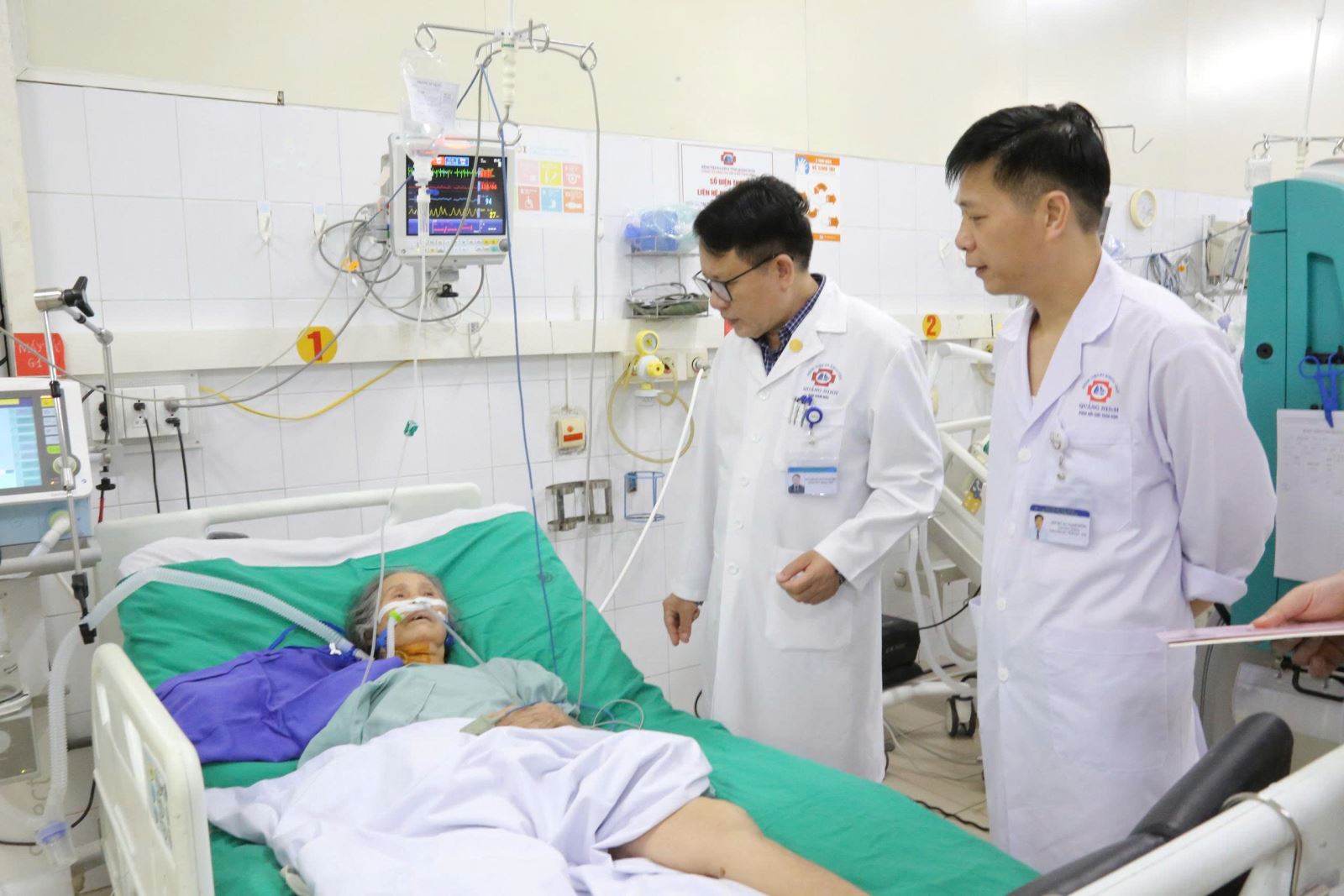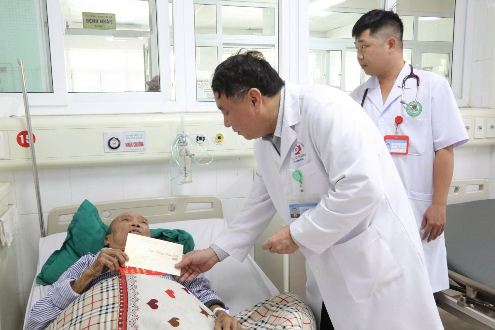 Ths.BsCKII Trần Ngọc Phương - Phó giám đốc Bệnh viện Đa khoa tỉnh thăm hỏi, động viên và chuyển lời chúc sức khỏe và quà tết của Lãnh đạo tỉnh Quảng Ninh, Bệnh viện ĐK tỉnh cho người bệnh đang điều trị tại đơn nguyên HSCC-GMHT, BVĐK tỉnh Quảng Ninh cơ sở 2.