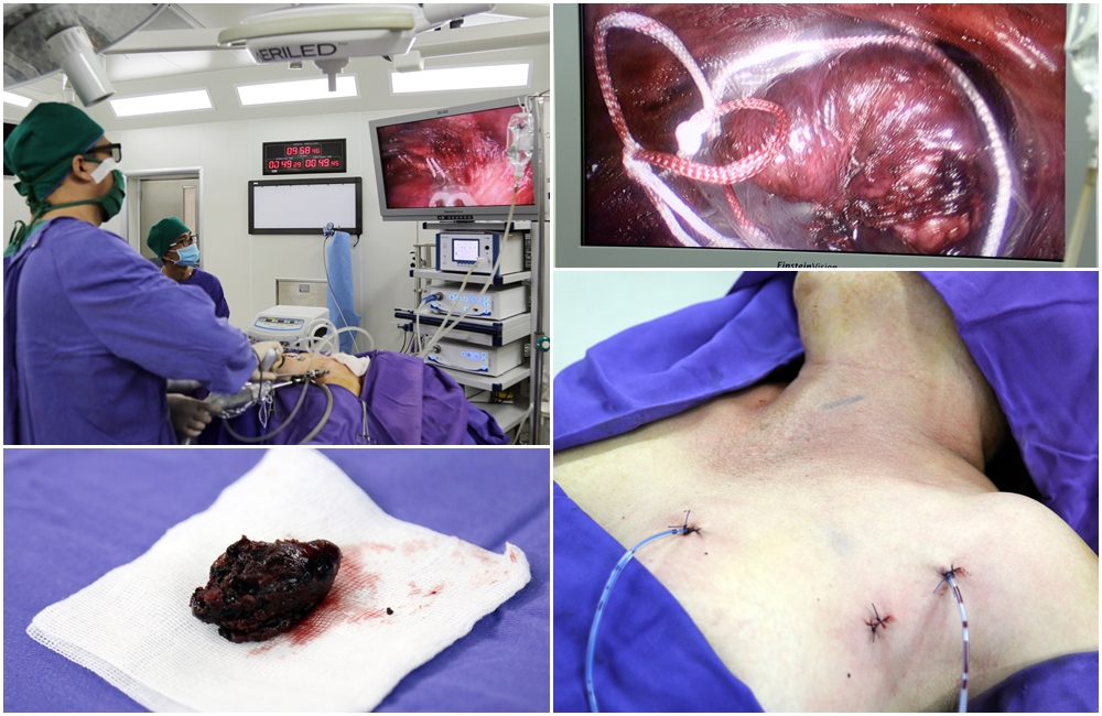 Khối u tuyến giáp được cắt qua nội soi 3D với vết mổ nhỏ vùng ngực và nách.