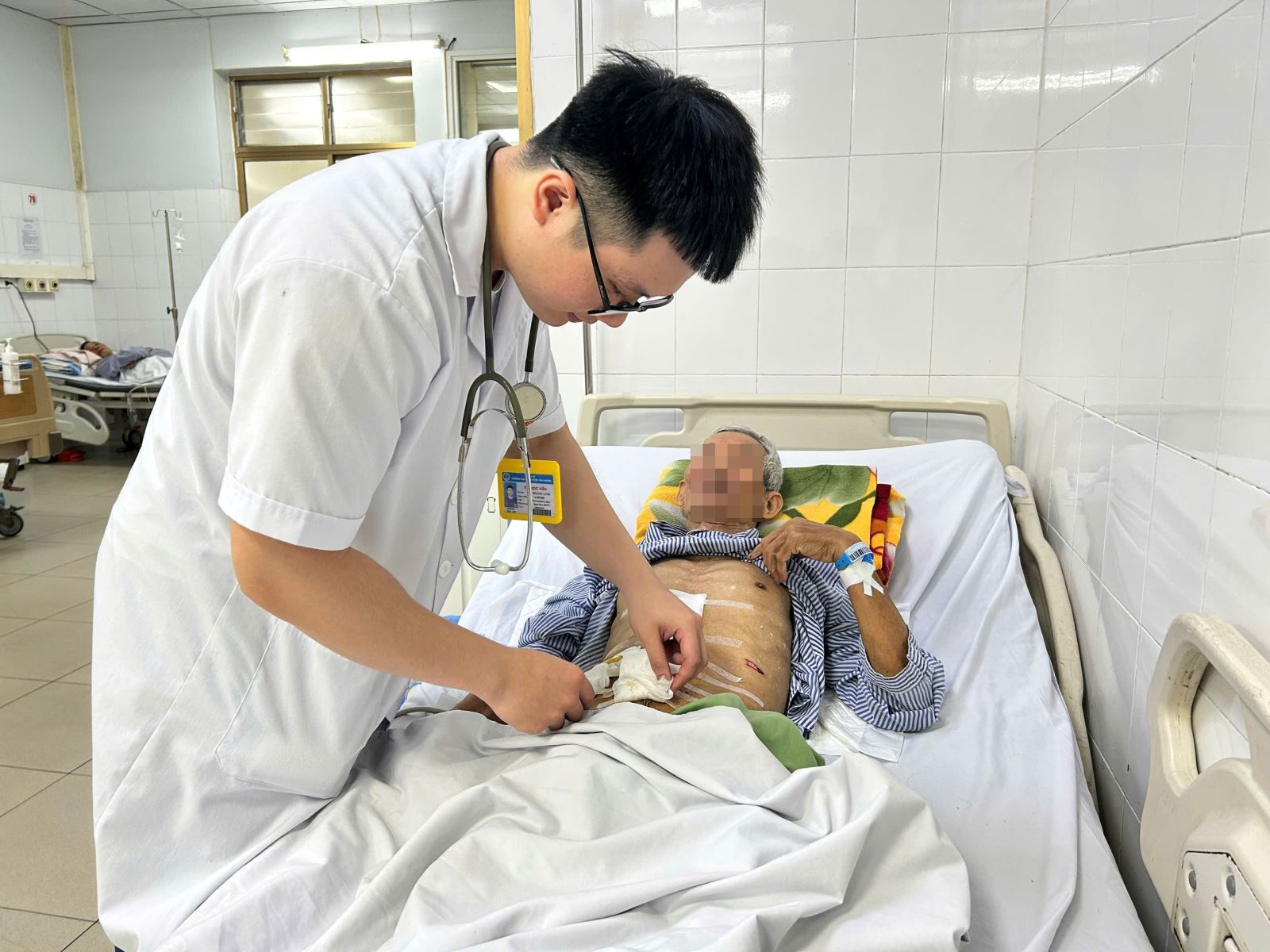 Sau mổ, sức khỏe bệnh nhân tiến triển tích cực, các chỉ số ổn định, bụng mềm, vết mổ khô, chức năng tiêu hóa và vận động bình thường, được theo dõi tích cực tại khoa Ngoại.