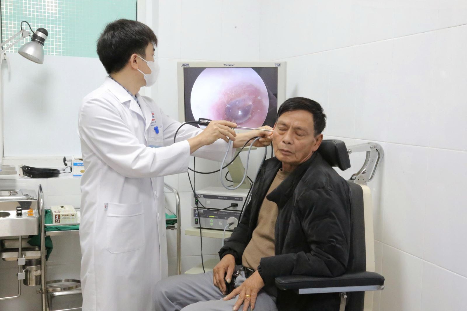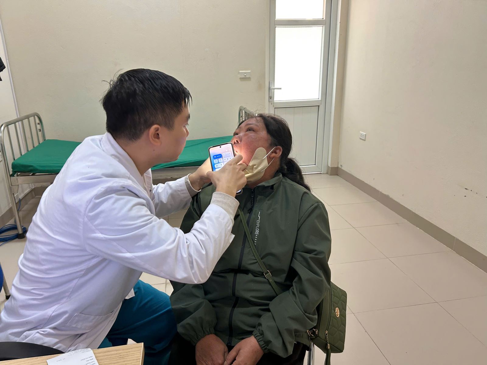 Thực hiện thăm khám cho người dân tại phòng khám chuyên khoa Tai- mũi- họng