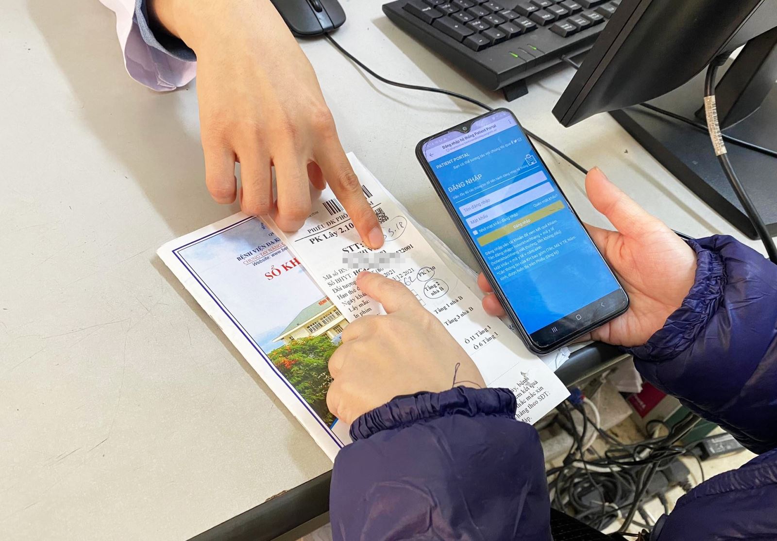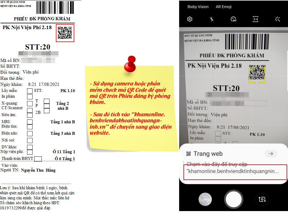 Bệnh nhân có thể truy cập qua mã QR code trên phiếu đăng ký khám...