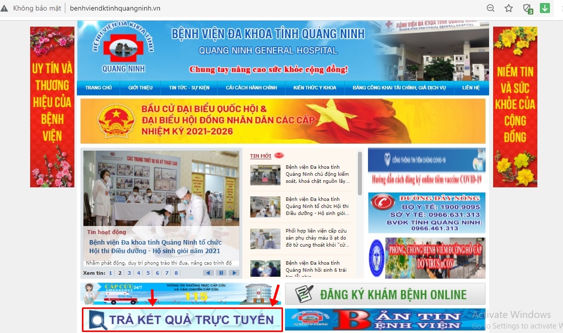 - Hoặc truy cập trực tiếp vào Trang thông tin điện tử (website) Bệnh viện: http://benhviendktinhquangninh.vn/. Sau đó vào mục “TRA CỨU KẾT QUẢ TRỰC TUYẾN”.