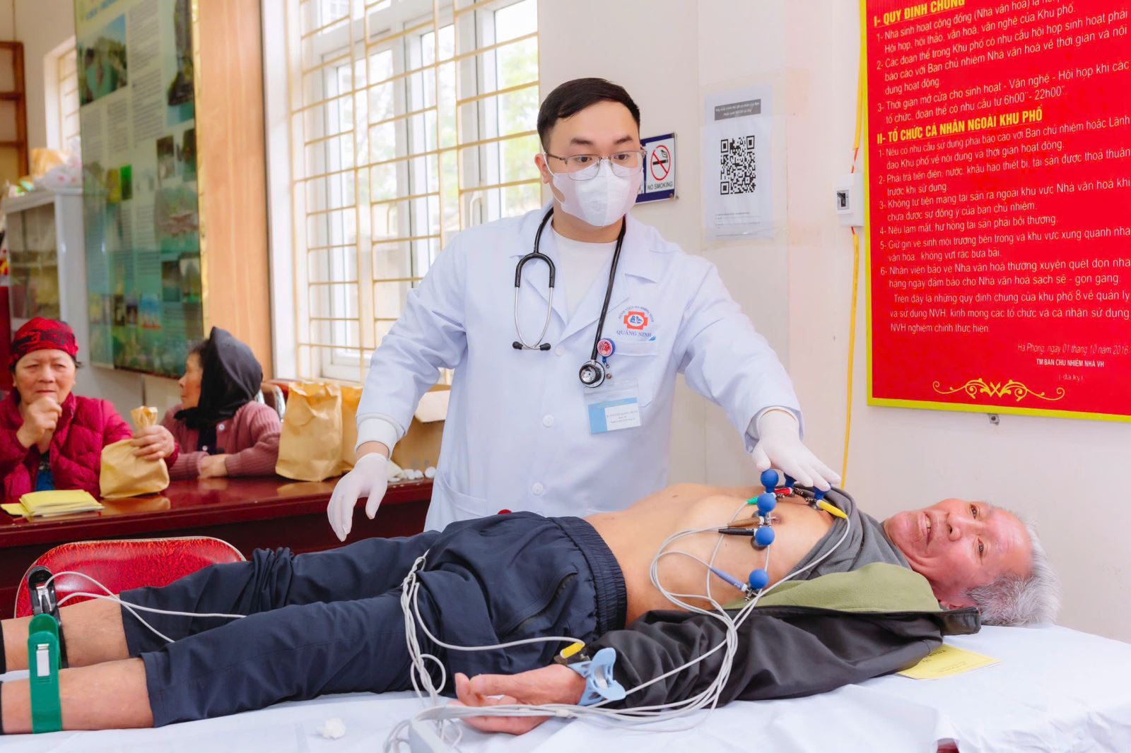 Đoàn khám lưu động với các 30 y bác sĩ, đoàn viên của Bệnh viện Đa khoa tỉnh Quảng Ninh gồm các chuyên khoa: Nội khoa, Ngoại khoa, Nhi khoa, Sản khoa, Tai mũi họng… cùng trang thiết bị hiện đại đã tạo điều kiện cho người dân trên địa bàn xã có dịp được khám sức khỏe tổng quát miễn phí.