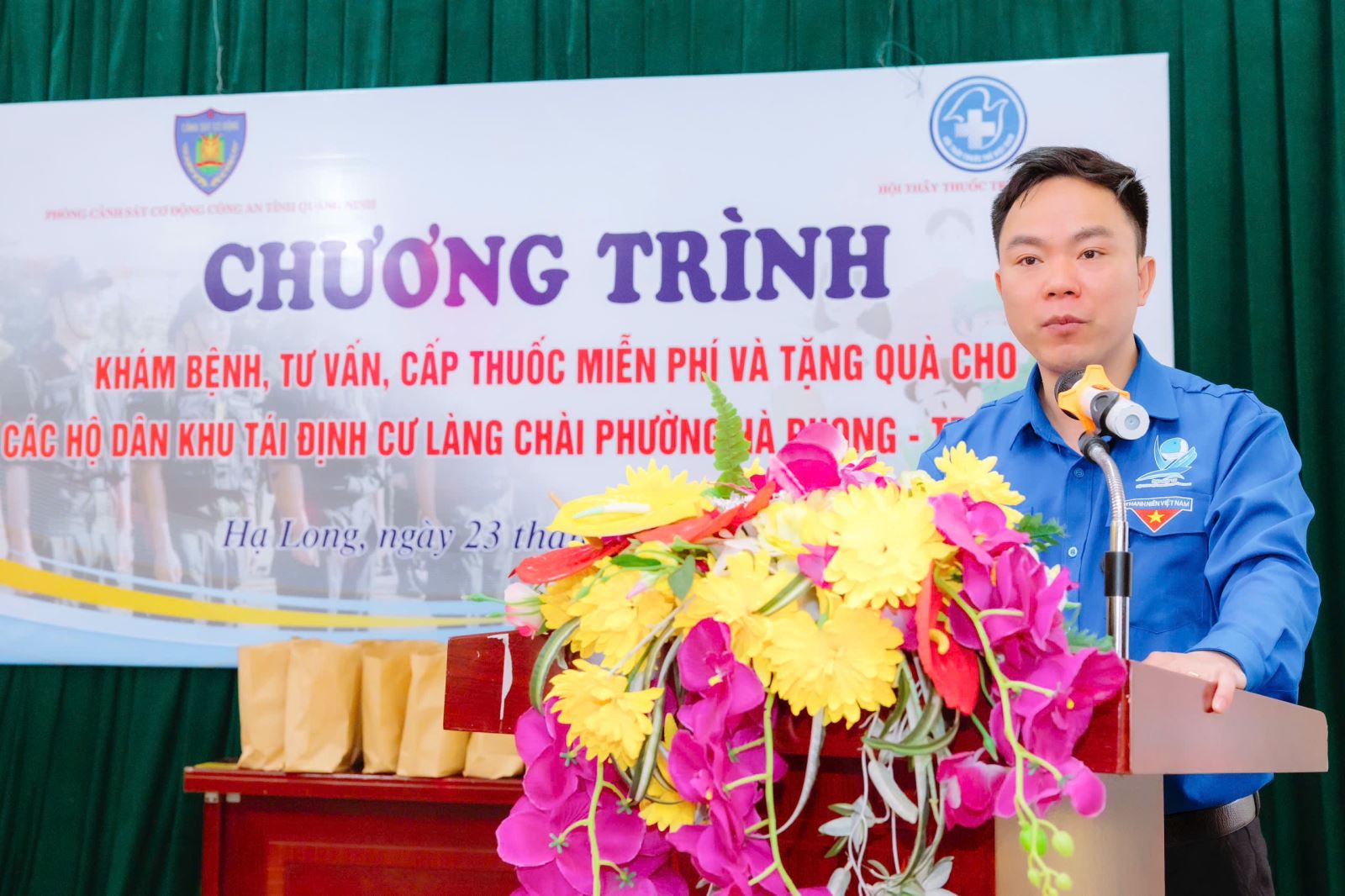Ths.Bs Ngô Văn Tuấn, Trưởng khoa Tim mạch, Bí thư Đoàn thanh niên Bệnh viện Đa khoa tỉnh phát biểu tại chương trình.
