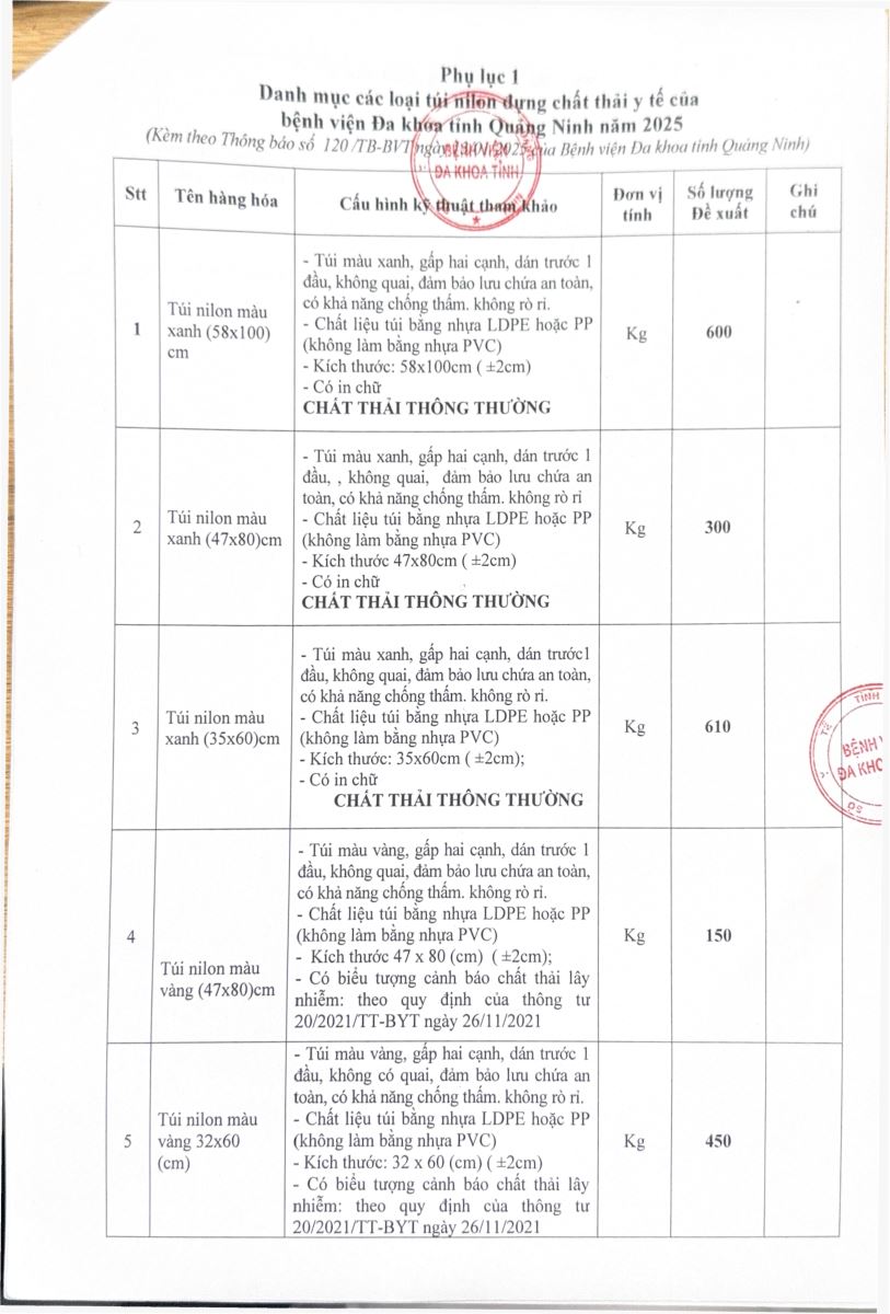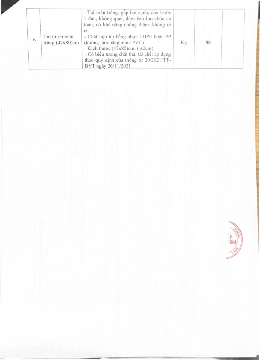 Mời báo giá cấp bách mua sắm các loại túi Nilon đựng chất thải y tế (120)