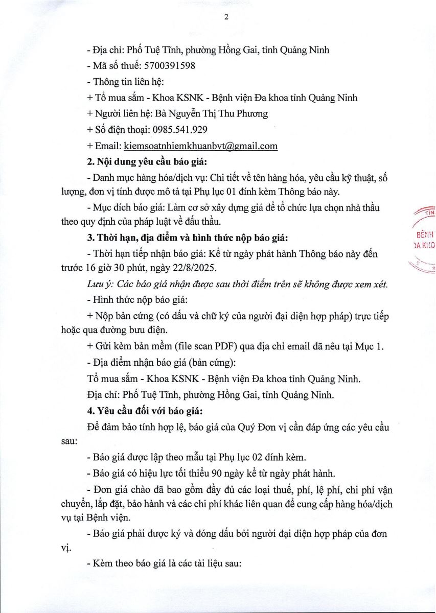 - Mời cung cấp báo giá dịch vụ thẩm định giá thiết bị y tế (2208)