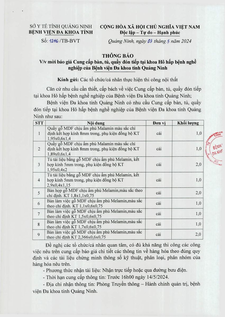 - Mời báo giá thuốc của Bệnh viện Đa khoa tỉnh Quảng Ninh (1600)