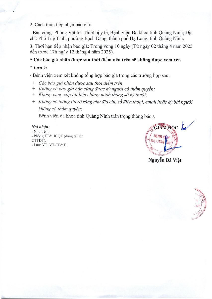- Mời báo giá trang thiết bị y tế phục vụ công tác khám chữa bệnh tại Nhà thuốc bệnh viện đợt 1 năm 2025 (723)