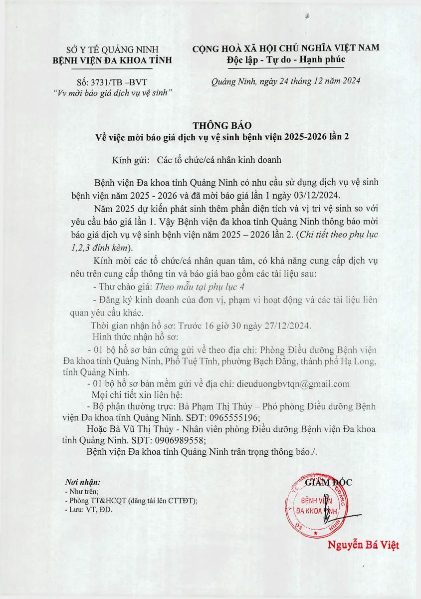 Mời báo giá dịch vụ vệ sinh bệnh viện lần 2 (3731)