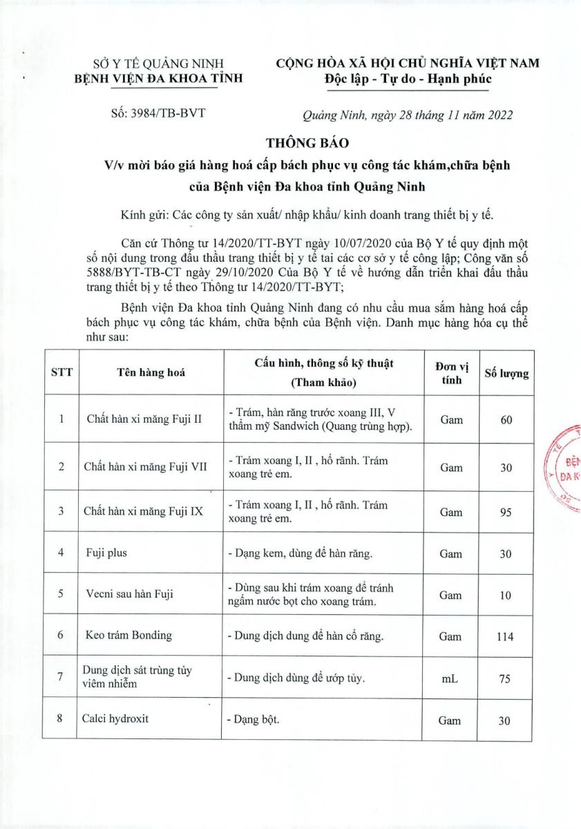 - Mời báo giá hàng hoá phục vụ công tác khám chữa bệnh (3515)