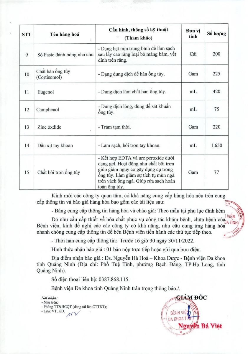 - Mời báo giá hàng hoá phục vụ công tác khám chữa bệnh (3516)