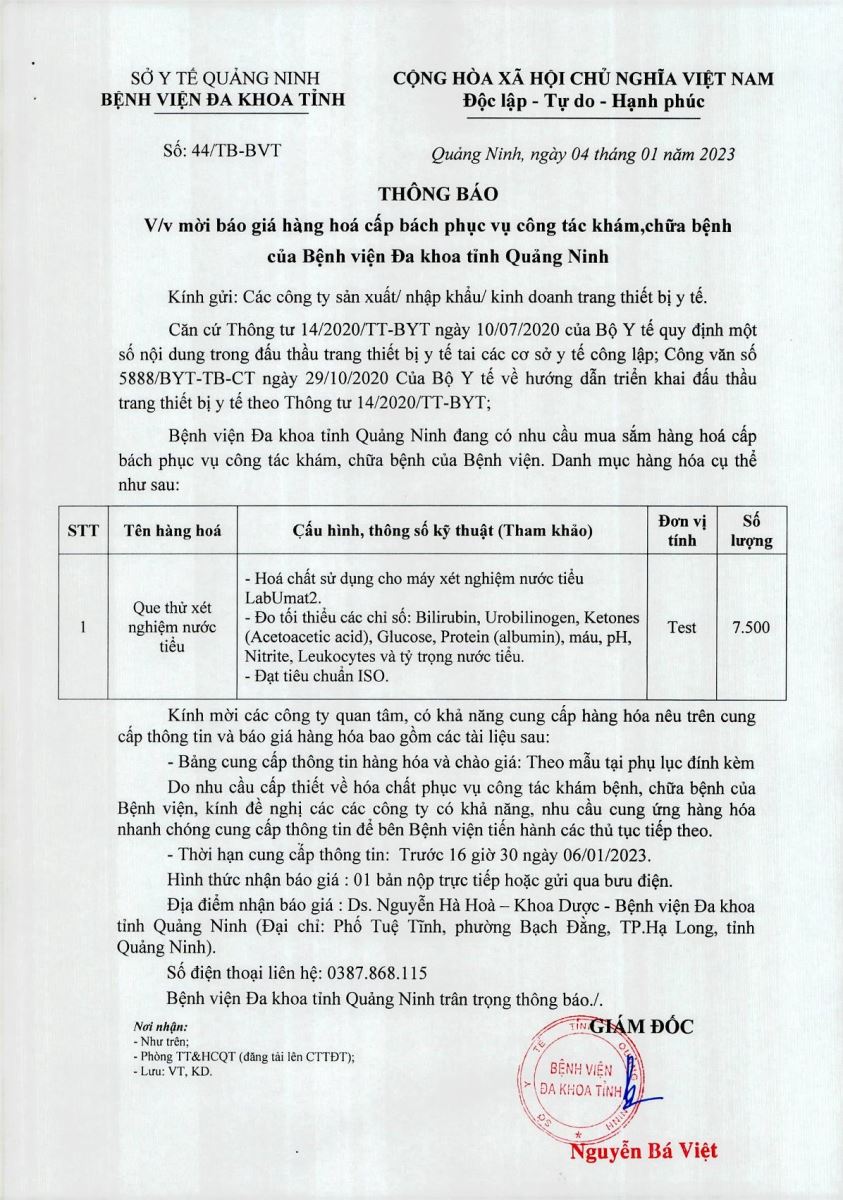 Mời báo giá hàng hoá cấp bách phục vụ công tác khám chữa bệnh (44)