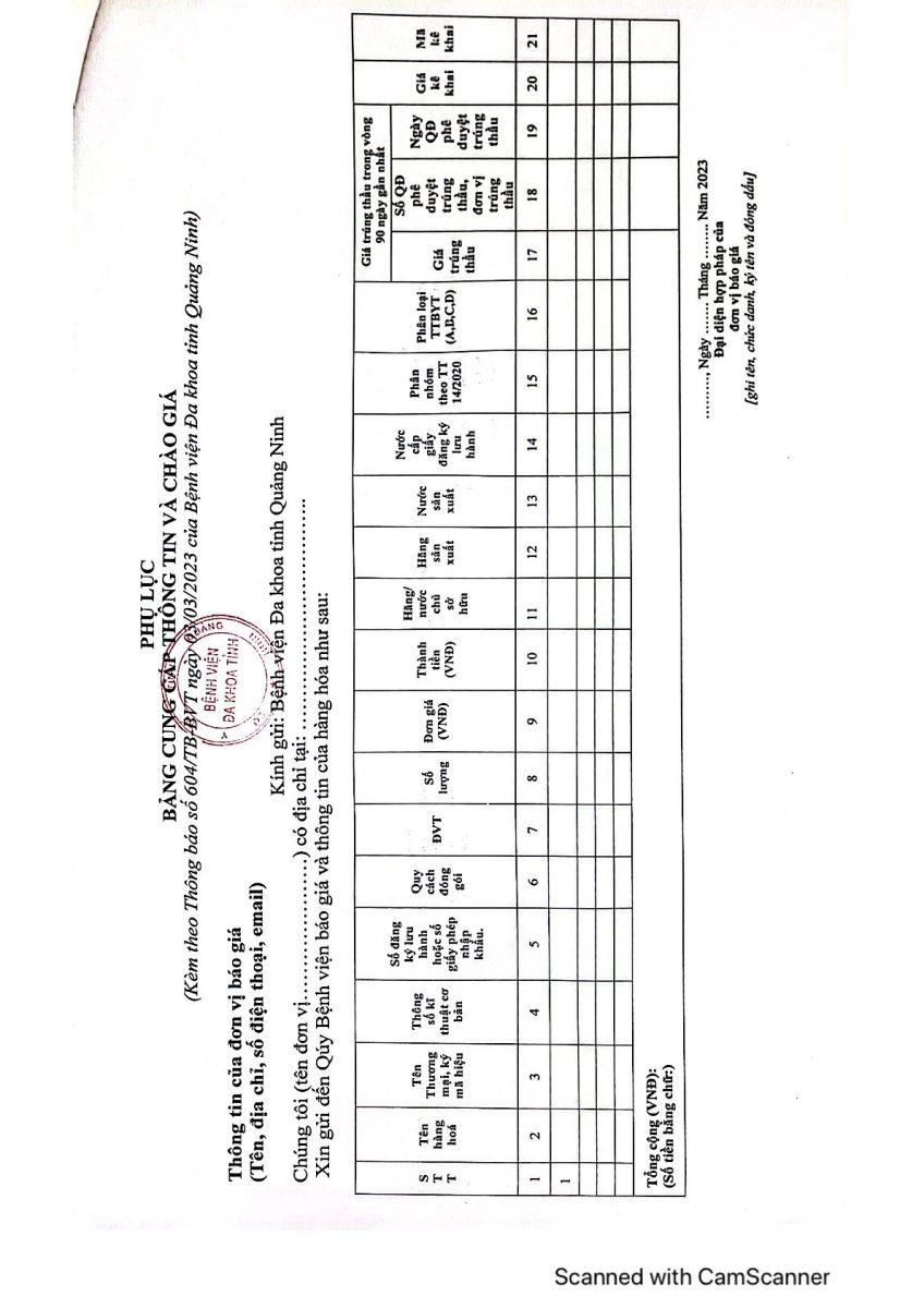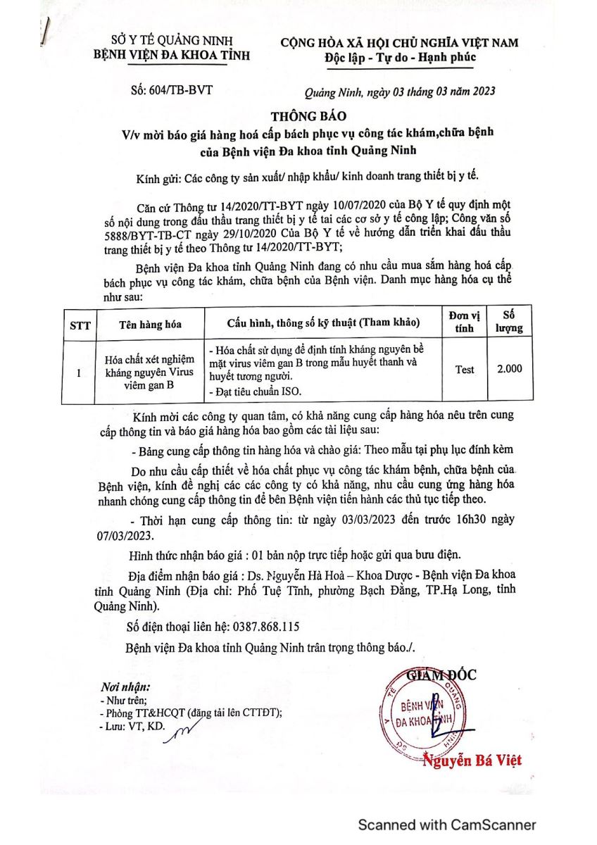 Mời báo giá hàng hoá cấp bách phục vụ công tác khám chữa bệnh (604)