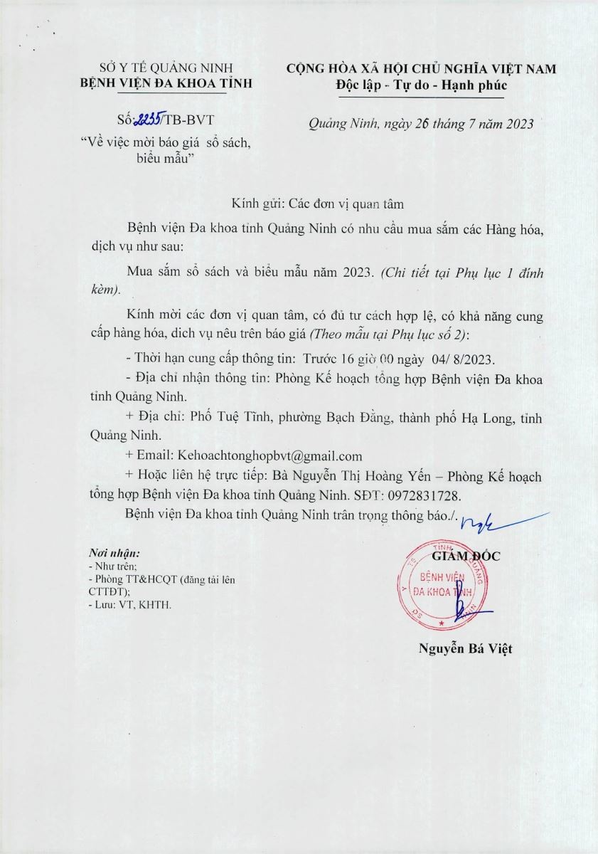 Mời báo giá sổ sách, biểu mẫu (2235)