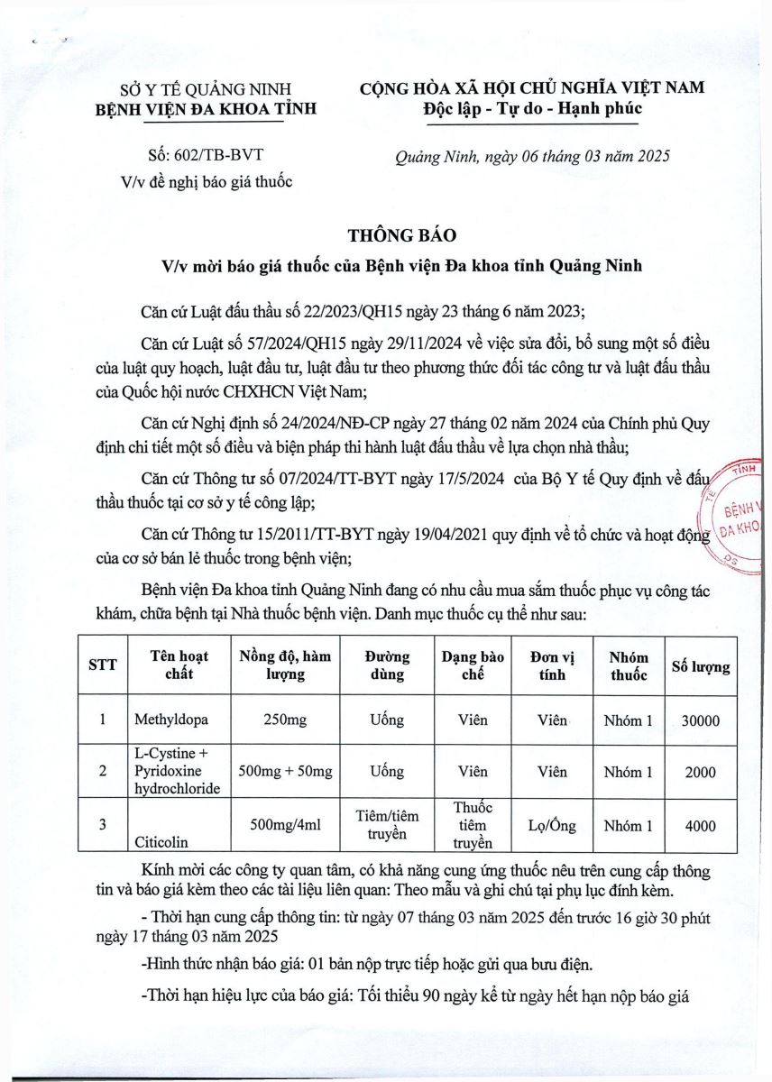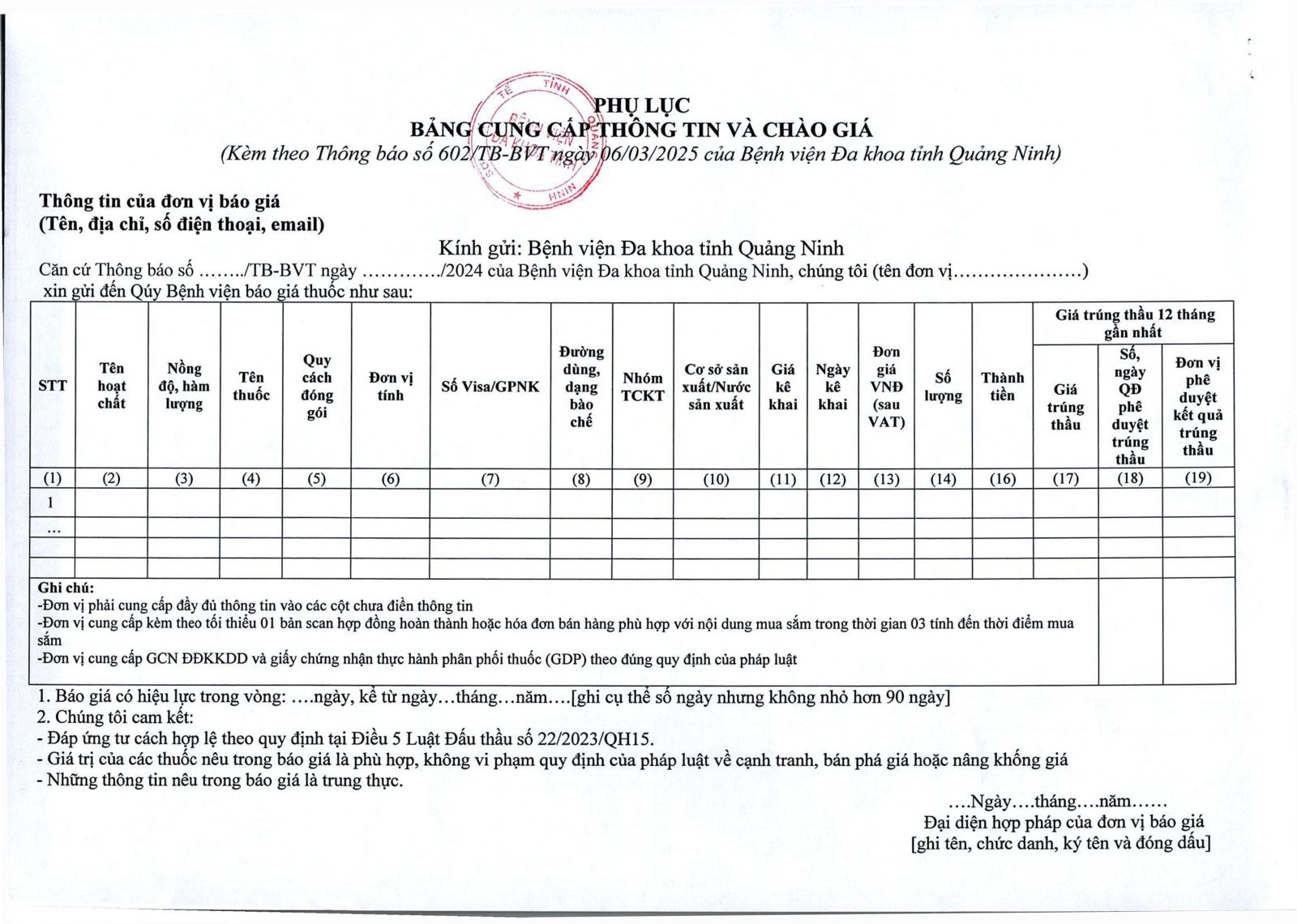 - Thông báo cung cấp mời báo giá mua sắm hàng hóa cấp bách phục vụ công tác khám bệnh (3044)