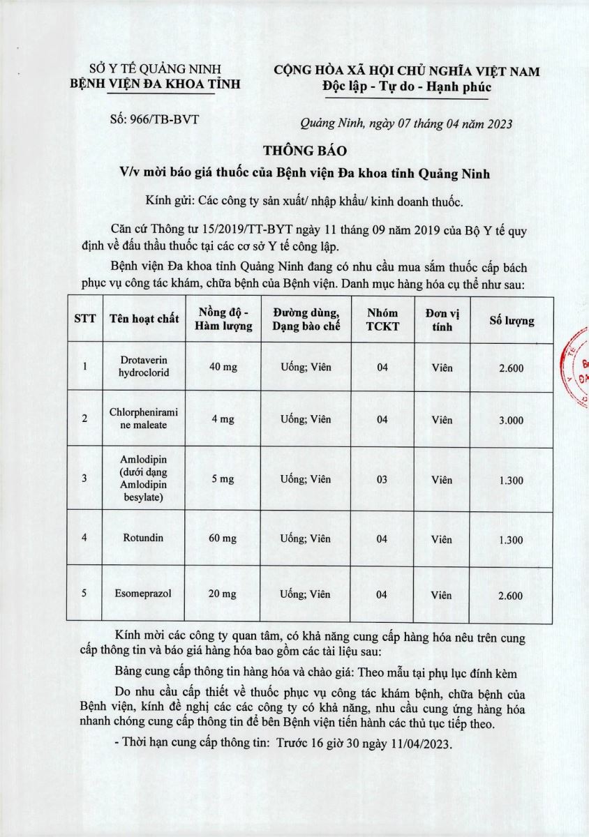 - Mời báo giá hàng hoá phục vụ công tác khám chữa bệnh (3515)