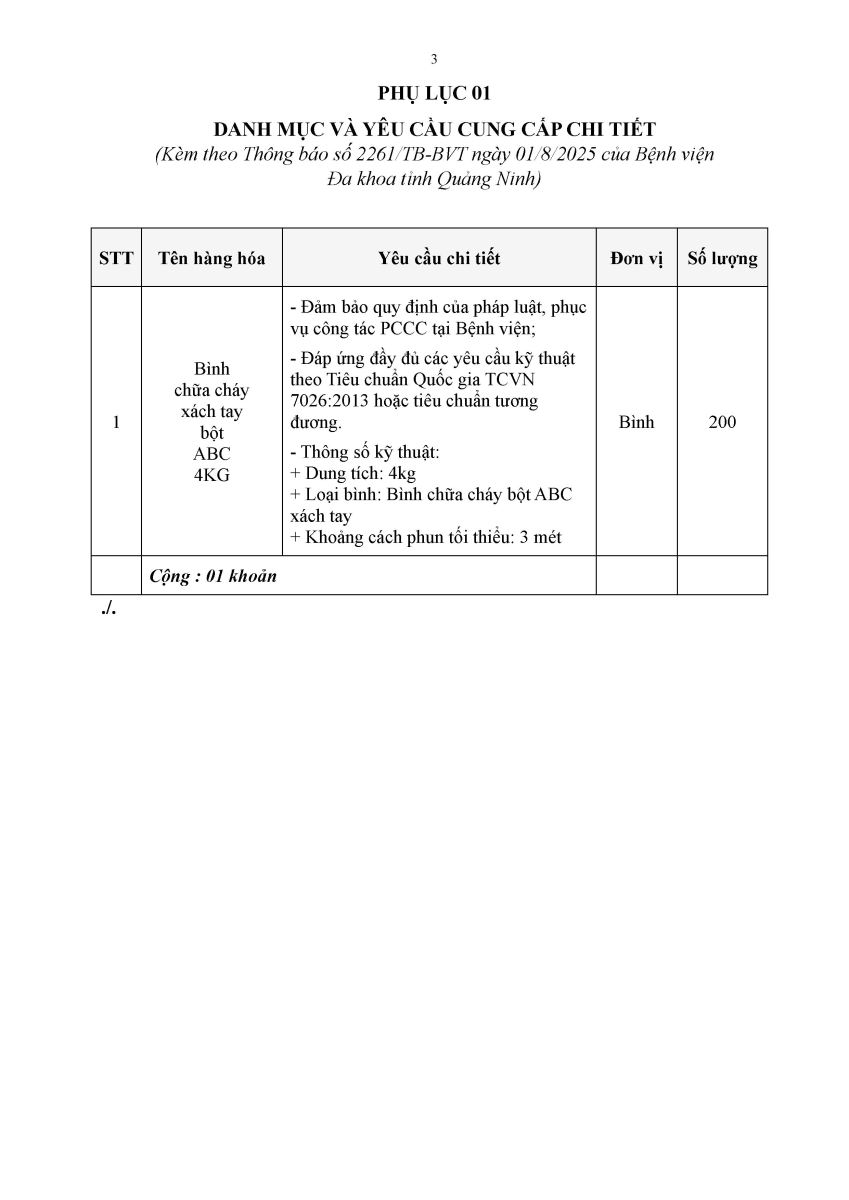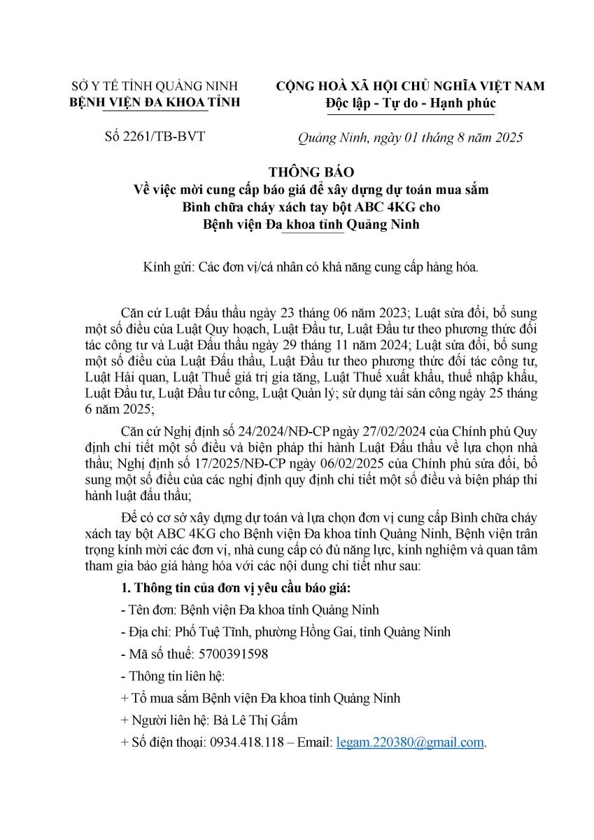 Mời báo giá xây dựng dự toán mua sắm bình chữa cháy xách tay bột ABC 4KG (2261)