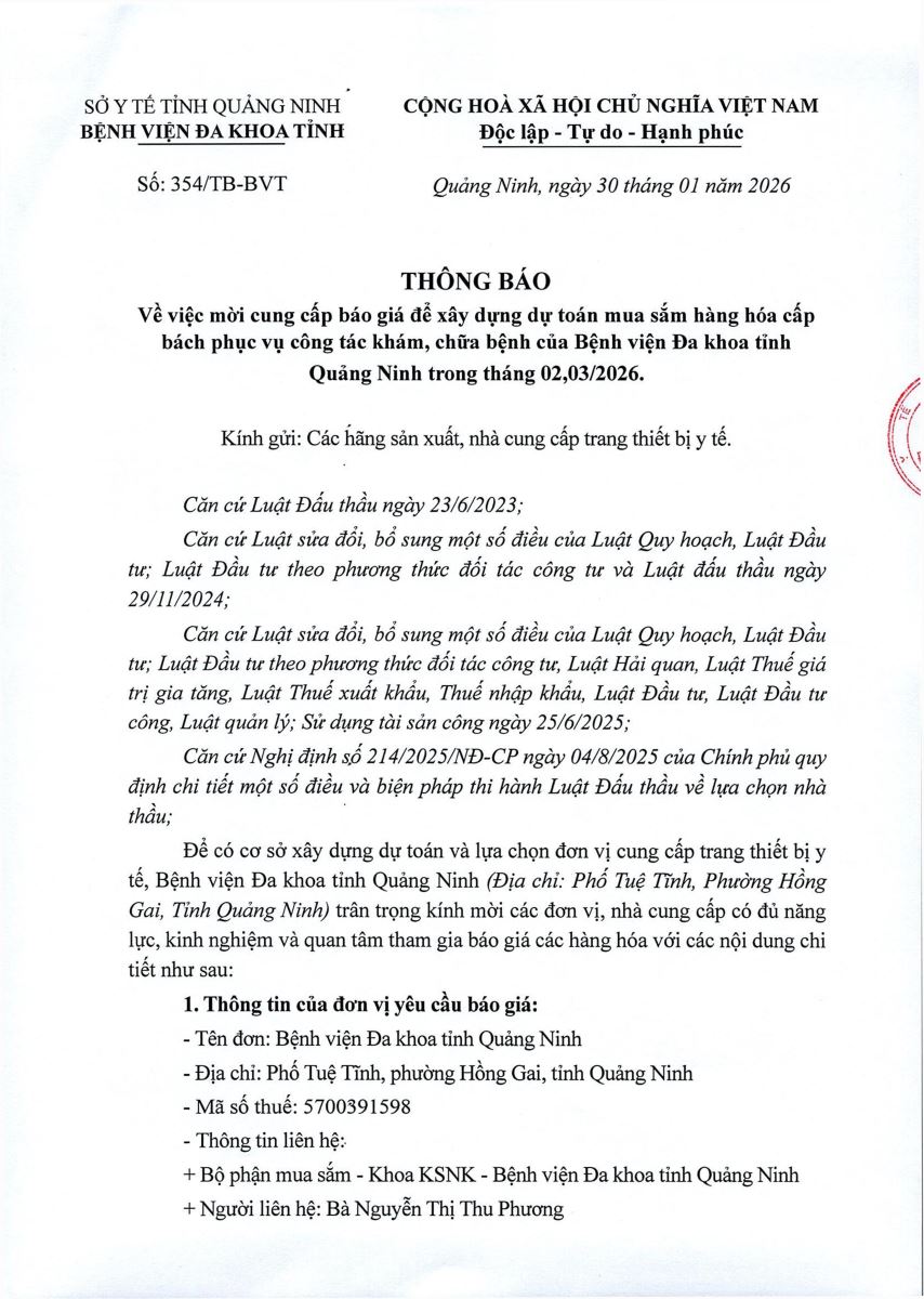 Mời cung cấp báo giá để xây dựng dự toán mua sắm (354)