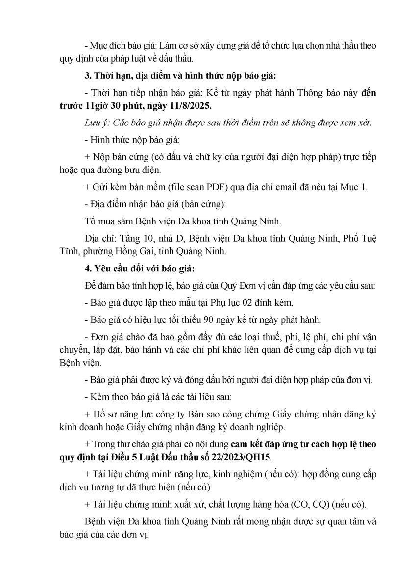 - Thông báo cung cấp mời báo giá mua sắm hàng hóa cấp bách phục vụ công tác khám bệnh (3044)