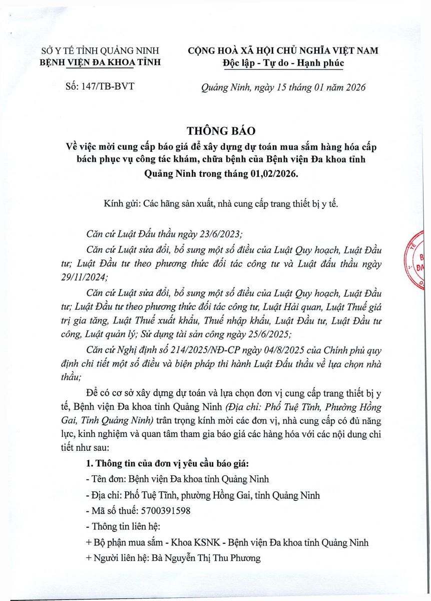 Mời cung cấp báo giá để xây dựng dự toán mua sắm hàng hoá (147)