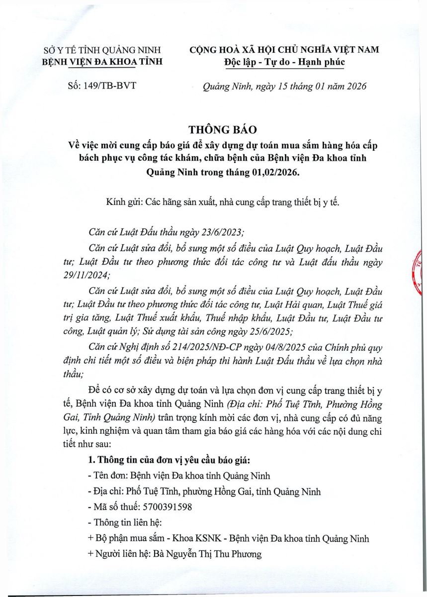 Mời cung cấp báo giá để xây dựng dự toán mua sắm hàng hoá (149)