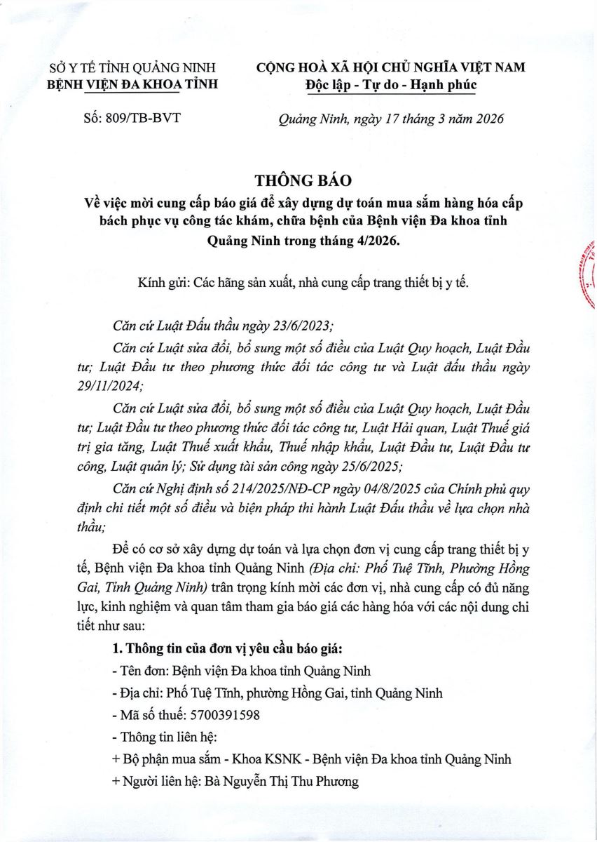 - Mời cung cấp báo giá để xây dựng kế hoạch mua sắm (707)