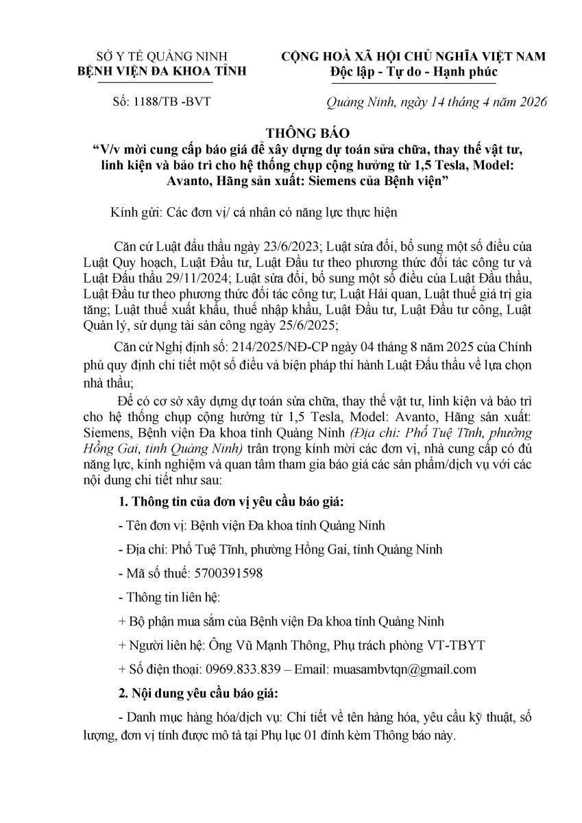 - Mời cung cấp báo giá để xây dựng dự toán sửa chữa và thay thế vật tư, linh kiện (1129)