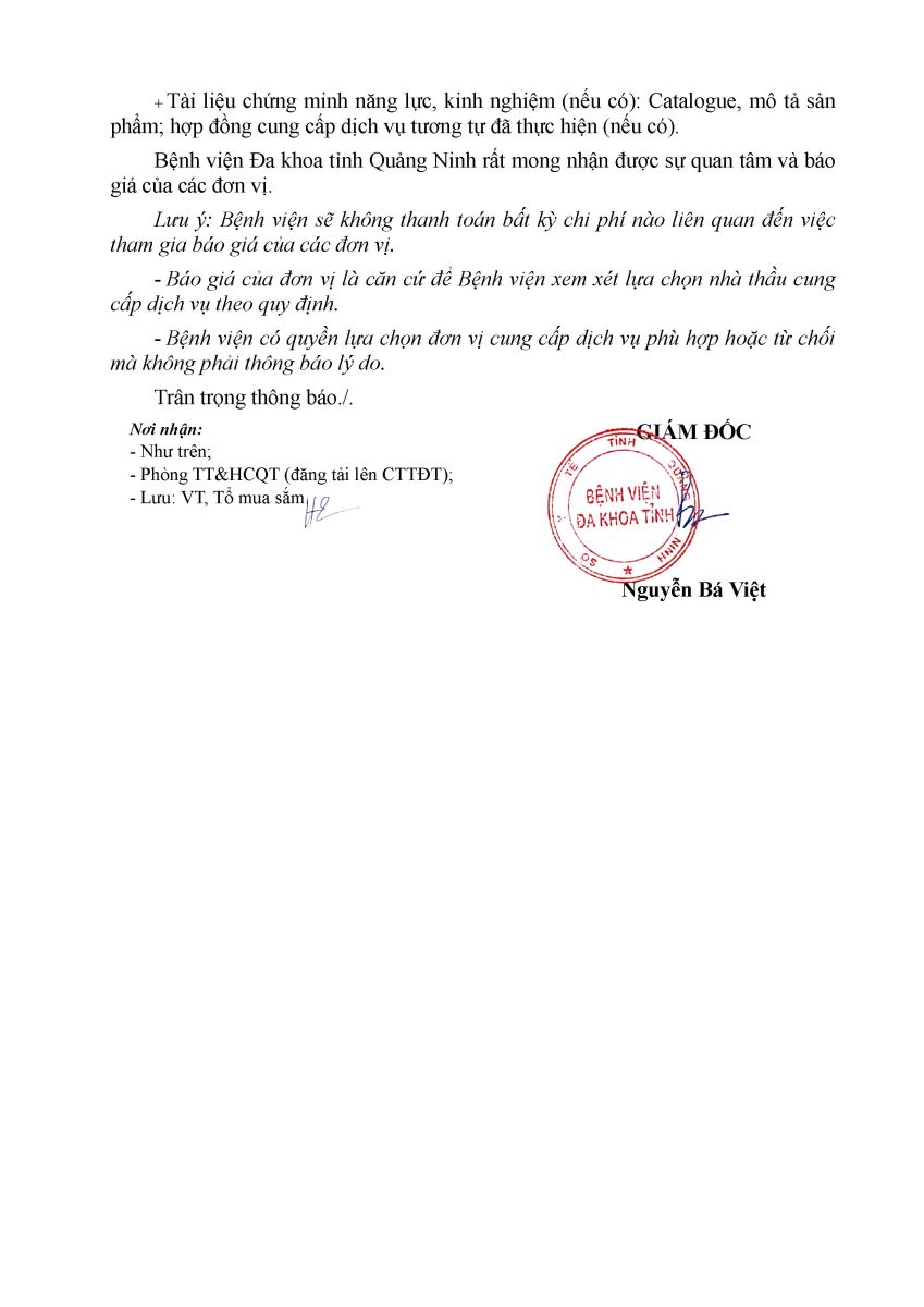 - Thông báo cung cấp mời báo giá mua sắm hàng hóa cấp bách phục vụ công tác khám bệnh (3044)