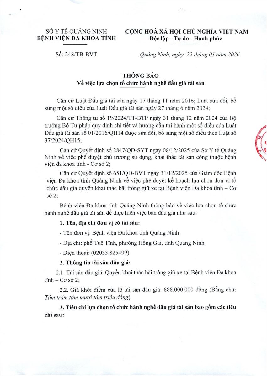 Thông báo lựa chọn tổ chức hành nghề đấu giá tài sản (248)