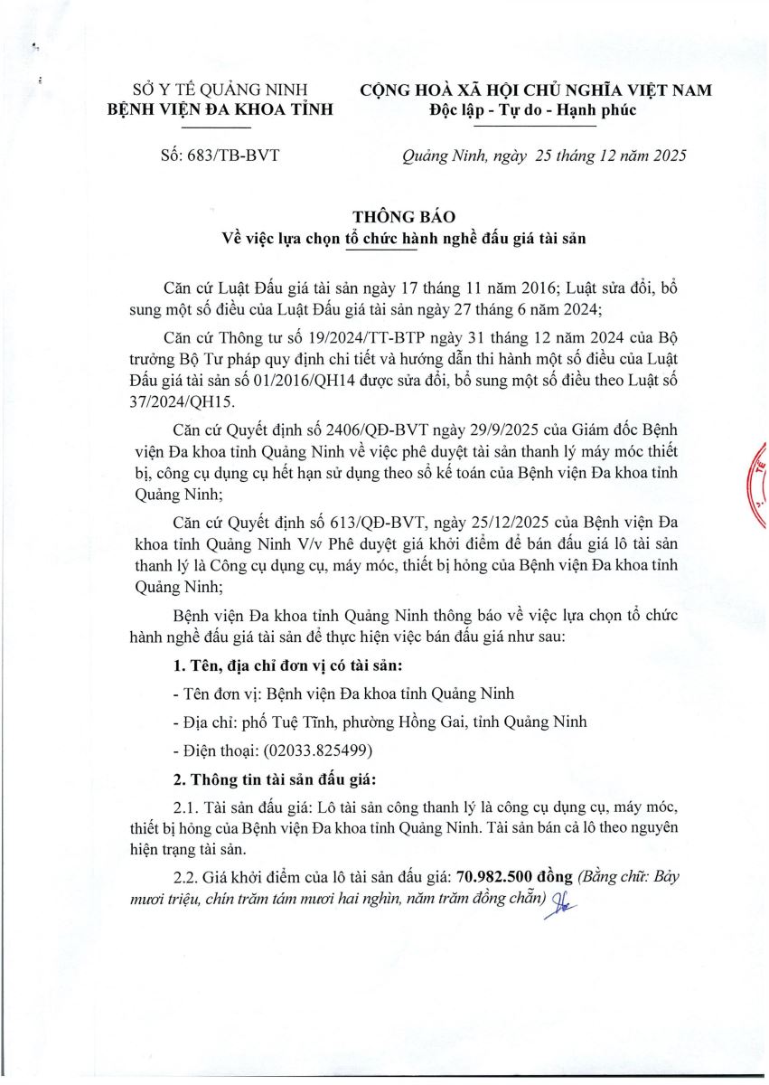 Thông báo lựa chọn tổ chức hành nghề đấu giá tài sản (683)