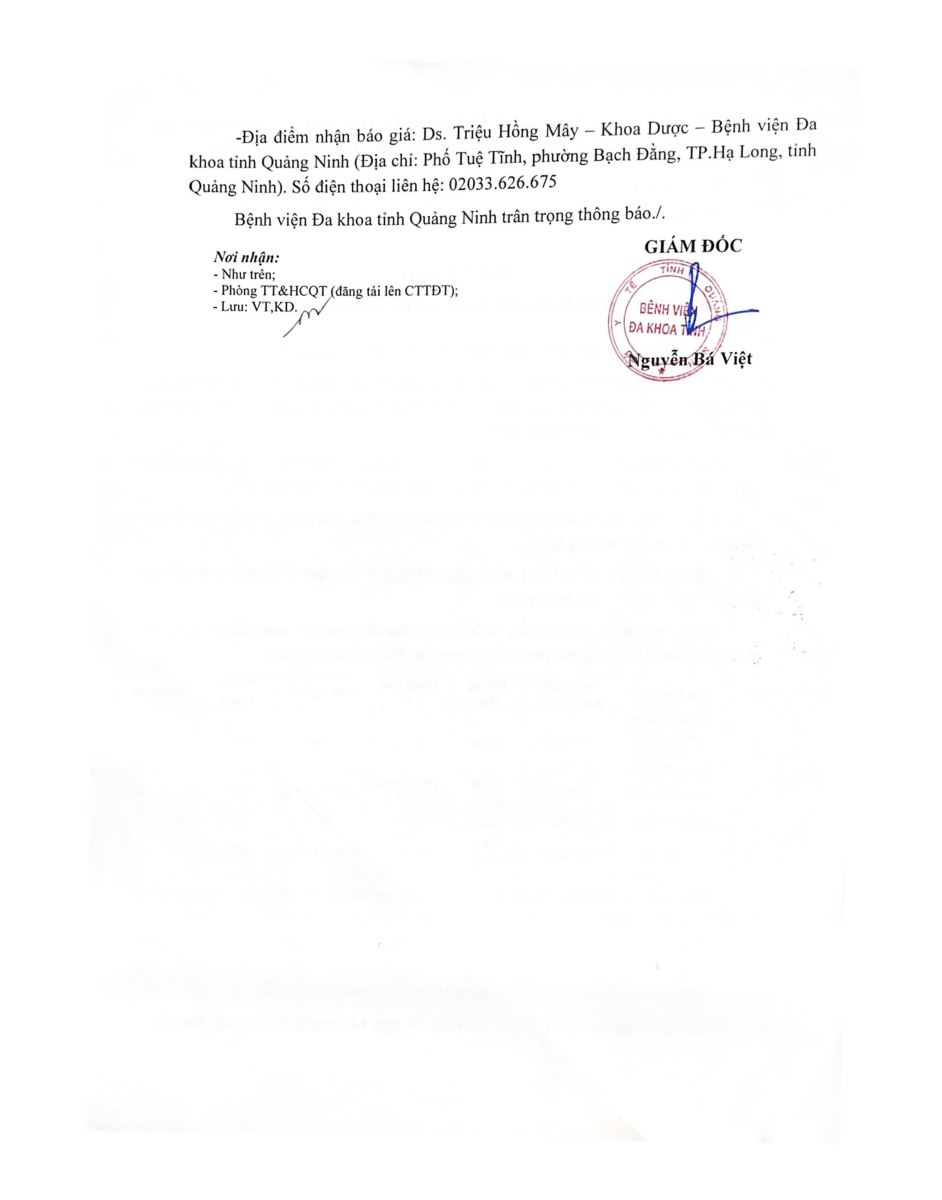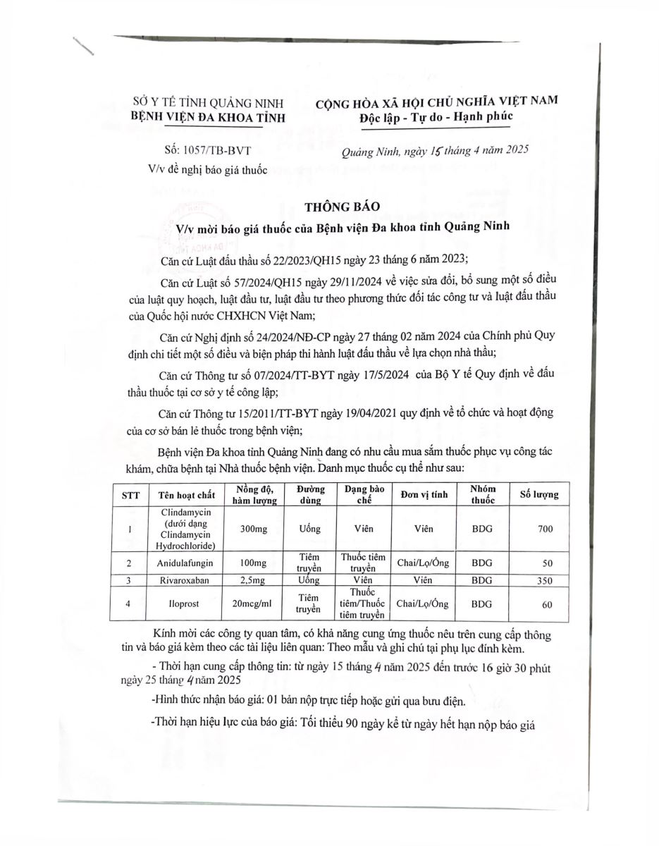 Thông báo mời báo giá thuốc của bệnh viện (1057)